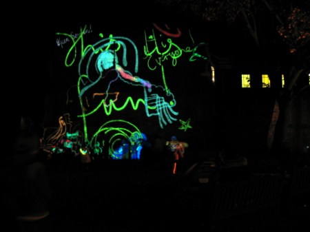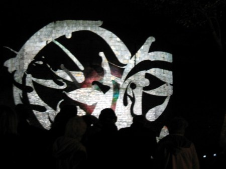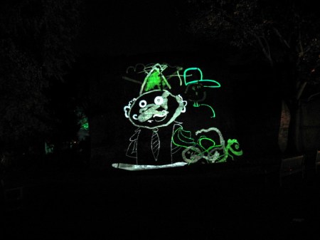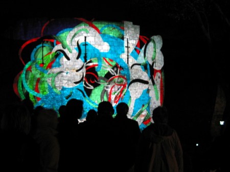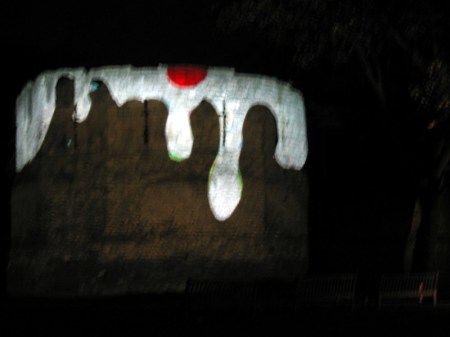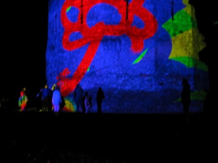 I’ve failed (again!) to carry out my intention to do a posting every day about the Tagtool performances on the Multangular Tower, so this is another ‘catch up’ posting. Now I have taken so many photos that it is really difficult to select just a few for this blog. Every evening has been different, but one thing has been a constant – the expressions of pure joy and delight on the faces of all the children, and their parents, who have ‘had a go’ at drawing with the Tagtool. One parent, on discovering that the festival ended on Sunday said to me, ‘What a shame! I think they should have kept the Wall of Light until Christmas.’ All the public sessions have attracted long queues, with people who didn’t manage to ‘have a go’ coming back early the next evening, or waiting for the late evening public session. I have taken so many photos – but here are some of my favourites.