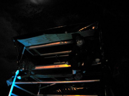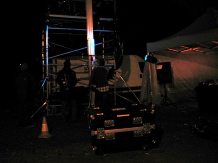 The next morning the only thing that remained to show where the projector tower had been was a pale green square in the grass.