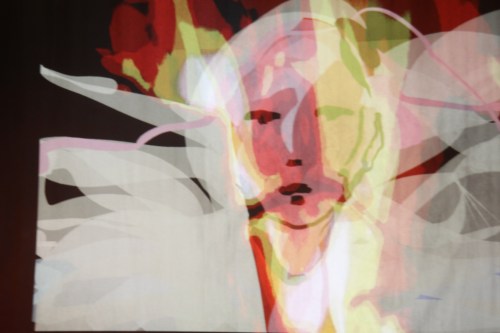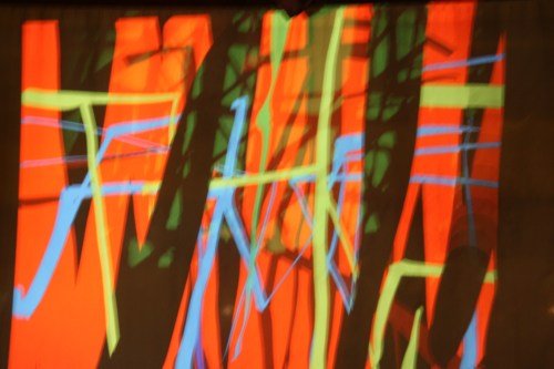 The photos above provide a much more vivid impression of my Tagtool drawing than they do of Dima’s underlying video but I think that the images below capture something of the interaction between the two mediums.