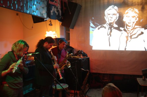 Our Tagtool performance was a real jam session – although the three musicians knew each other and had played together on previous occasions they had no time to rehearse or to practise working with the drawn and video images before the performance began.