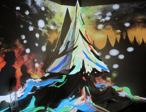 The photos above provide a much more vivid impression of my Tagtool drawing than they do of Dima’s underlying video but I think that the images below capture something of the interaction between the two mediums.