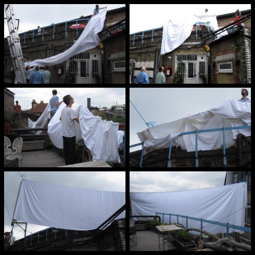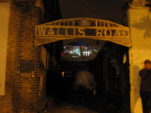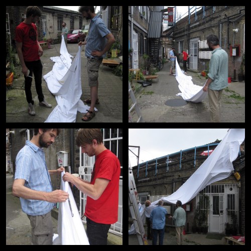 Meantime I went down to the street where took the photo below to show the reverse image of the Tagtool drawing on Ash’s big fabric screen floating in the sky across the lane.