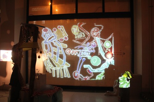As the guests were moving backwards and forwards between the theatre, bar and chill out room during the course of the evening, we were able to do a variety of drawing sequences and animations. Dima took many photos – here is a selection.