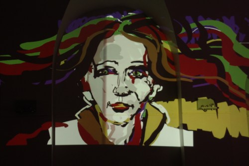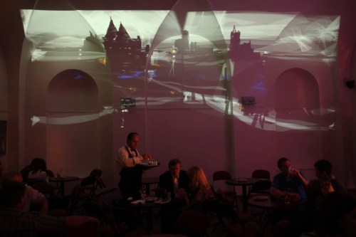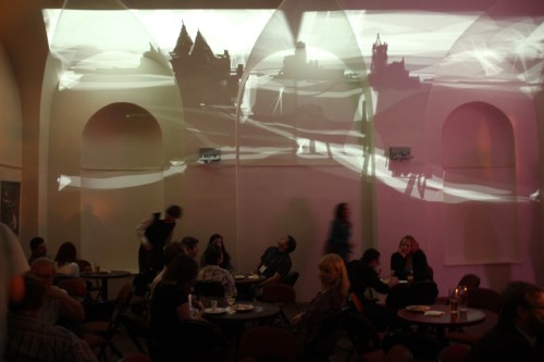 …and once the buffet was served and the chandelier switched off leaving only the more intimate lighting from the coloured spotlights, suddenly the projection appeared to be much brighter and more dramatic.