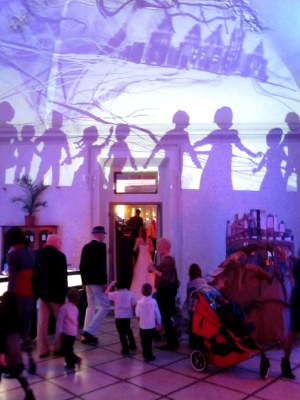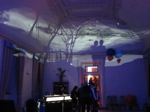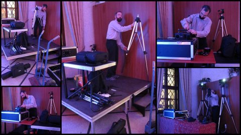 We arrived in the morning before the wedding ceremony began. Dima set up our Tagtool and projectors and tested everything in readiness for our performance.