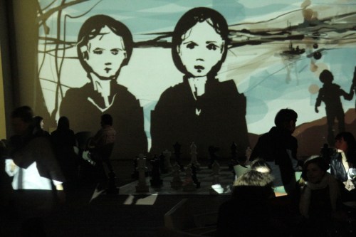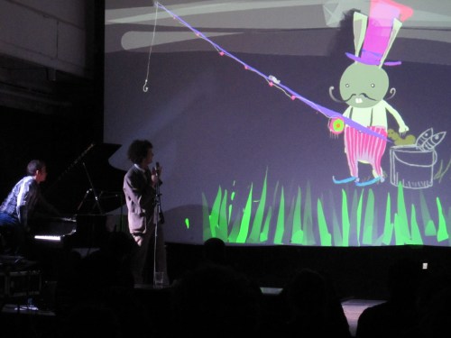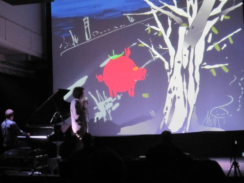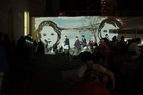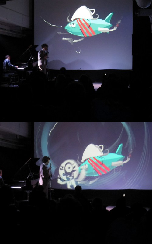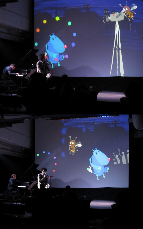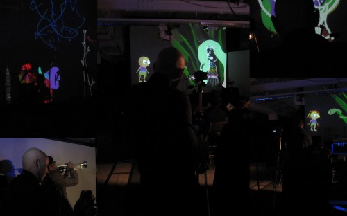 The grand finale on Friday evening was ‘7 sessions’, a set of improvised live animation episodes from the Tagtool originators, Markus Dorninger and Matthias Fritz (Maki and Itzi). Together with Philip Zoubek (piano) and Christian Reiner (voice) this performance, which featured a cast of Maki and Itzi’s Tagtool characters both old and new, provided the ideal ‘happy ending’ to the three days of artists’ performances at the Mapping Festival.