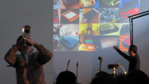 As an introduction to the three days of performances and workshops at the Fonderie Kugler where the Tagtool programme took place, first there was a fanfare from Ritsche and then Maki presented a short ‘history’ of the Tagtool.