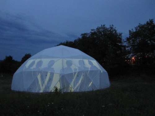 in the evening all of the images projected onto the canvas could be seen from the outside of the tent and once darkness fell the whole structure really glowed both inside and out.