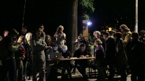 Here is a video from the performance in Berlin of one of the songs. The circumstances for Tagtool drawing at Bar Babette were not ideal – there was a lot of ambient light and the position of my Tagtool on the balcony meant that I had a very oblique view of the stage, which made getting the drawing in the ‘correct’ proportion from the audience’s viewpoint very difficult. I think the music in the video is much more interesting than the drawing – but at least it gives some idea of the performance!
