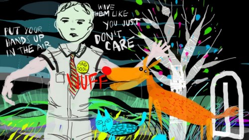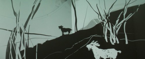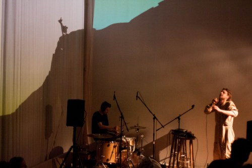 On Saturday 29 September at the Kaleidoskop 2012 weekend at mo.ë in Vienna there will be another opportunity to hear the song cycle ‘Animals’ by K.U.N.T.Z. that had its premiere on 13 September in Berlin at Bar Babette. Here are some of Dima’s photos of my visuals from a practice drawing session in our studio…..