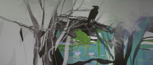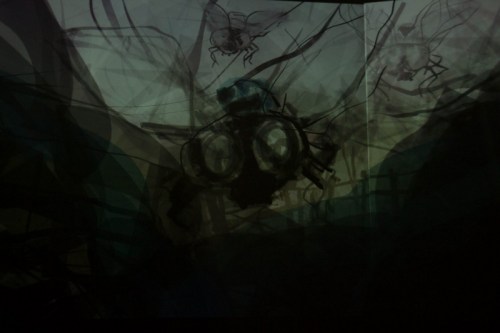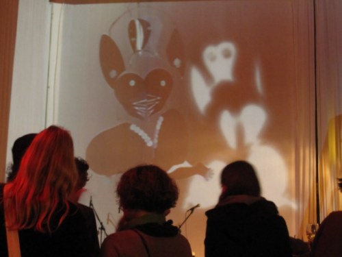 For each of the seven creatures represented in the songs I made a separate Tagtool image, moving from one scenario to the next as the music progressed. This was a really challenging live drawing project for me – developing seven different drawings in 40 minutes of continuous drawing, and I usually draw people, not animals – but it was great fun to do! Here are a few of Dima’s photos – I will post the full video of the performance later.
