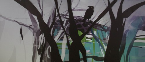 I took all these photos of Ernst’s work with my little camera but unfortunately they don’t really capture either the charm of the slowly revolving mobile and its accompanying shadow – or its grand presence when ‘translated’ as a projection on to the full height of the curtain behind the stage.