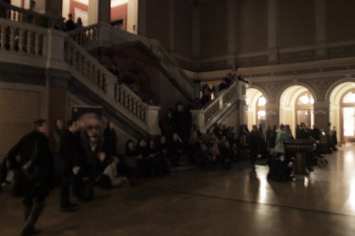 Hey!zeus and Radimo were playing on the half landing of the stairway so that they too had an unobstructed view of the drawing in progress and I am sorry that I only have this very grainy photo of them to post on the blog.