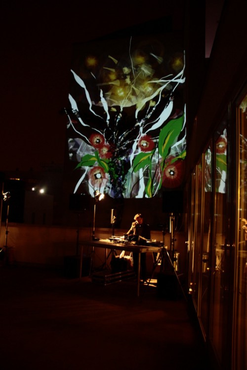 This was our second visit to DOX Gallery this year – this time it was to provide visuals on the roof terrace for an evening event held by Česká Pojišťovna to celebrate the company’s 185th anniversary. We set up three Tagtools – which meant that in addition to the two walls of the terrace we could also do some Tagtool drawing on the wall behind Martin Mikuláš‘s DJ console.