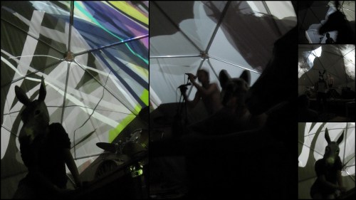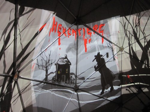 Although K.U.N.T.Z. have presented the song cycle ‘Hexentiere’ in different venues in Vienna, Berlin and Prague, the beautiful dome tent, pictured below, of the ‘Drama’ stage at Festival HISTeRIA provided an ideal space for us to show in performance the multi-dimensional aspect of the piece for the first time.