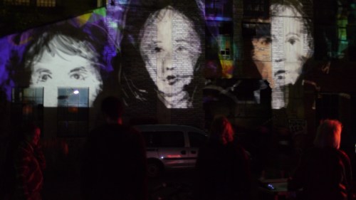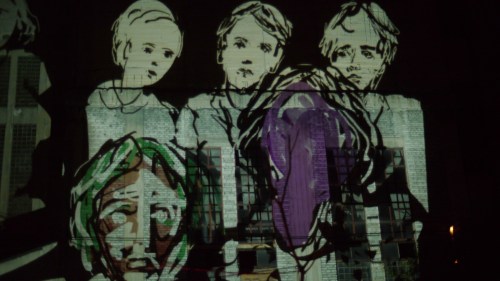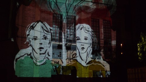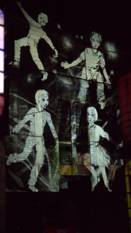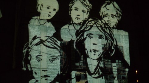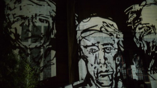 A lot of hard work had gone into clearing the site and erecting the various tents and stages for the festival. We were projecting on the exterior of the big building in the photo above – which proved to be a great location for Tagtooling!
