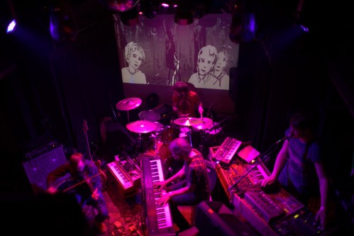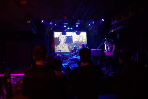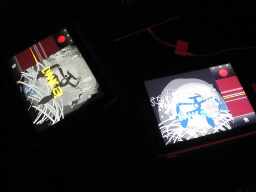 ….but because their bass player took ill just before the concert began the two other band members decided to play a different set of improvisations for their performance. Having no idea of what the musicians were going play made me very nervous, but Seppi’s Tagtool for iPad animation skills really saved the day, and it turned out to be very enjoyable session – as I hope these photos show!