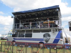 The next day we went to the festival Pohoda, in western Slovakia. This enormous festival is held at the airfield at Trenčín and Vložte kočku’s performance was in the afternoon at the Red Bull Stage bus.