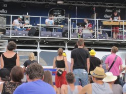 This was a very spectacular location on top of a hill just outside Karlovy Vary but it could only be reached by a steep, narrow and winding road so it was good that there was a special all night bus service to take festival visitors to and from the venue! And despite the weather being rather cold and damp, there was a good-sized audience for Vložte kočku’s performance in the evening.