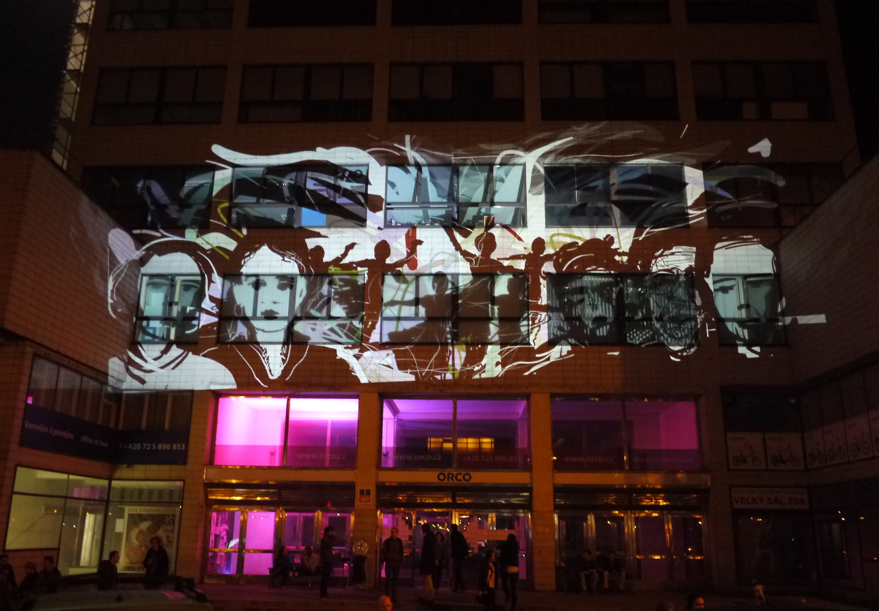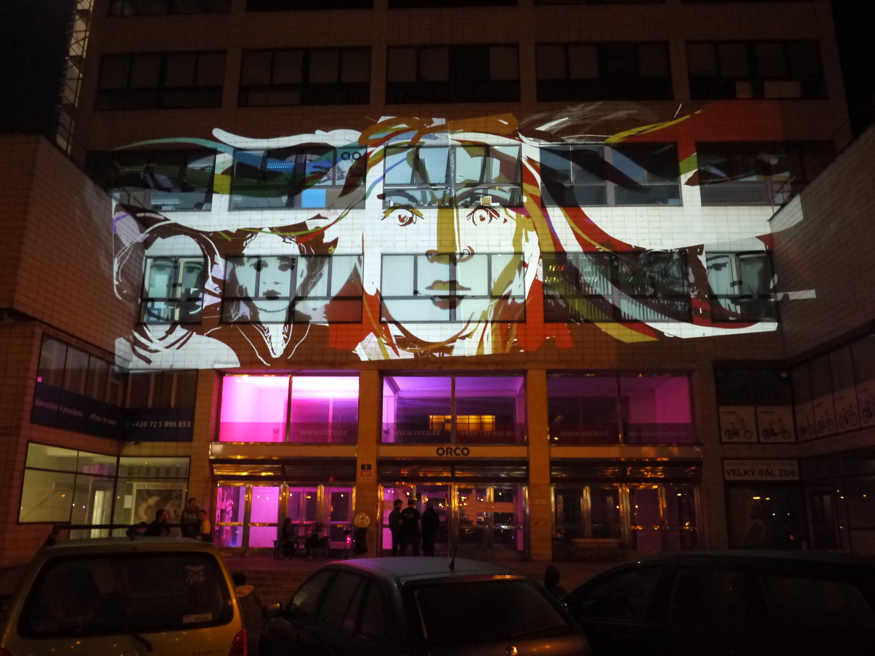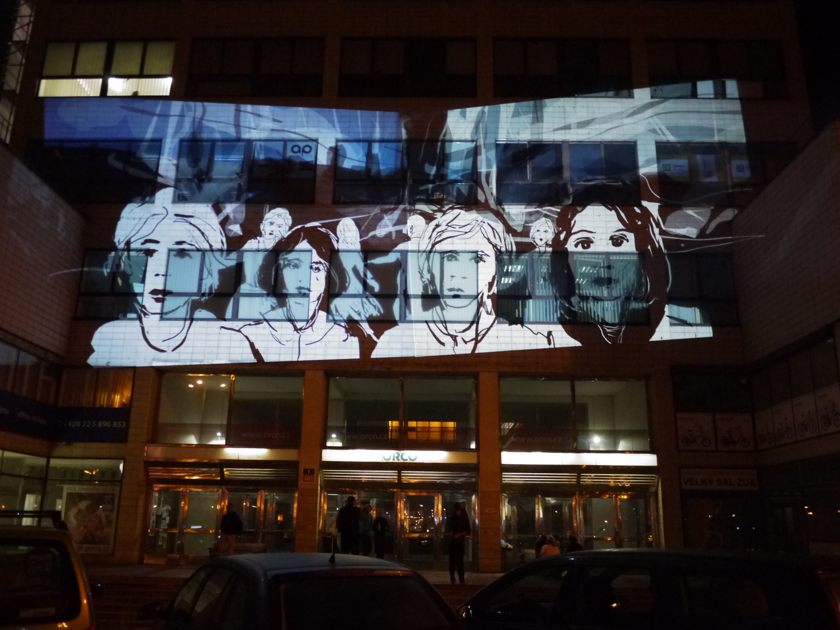 This BYOB event at the Signal festival, organised by Nicola Pavone (VJ Luper), was held at Podnik Club in Bubenska 1. This impressive Functionalist building formerly owned by the Prague Electricity Company is now home to a variety of design studios, offices and young creative companies. We have Tagtooled here before, as it’s where Lunchmeat have their HQ and club NEONE, but it was the first time that I had drawn on the outside of the main entrance to the building.