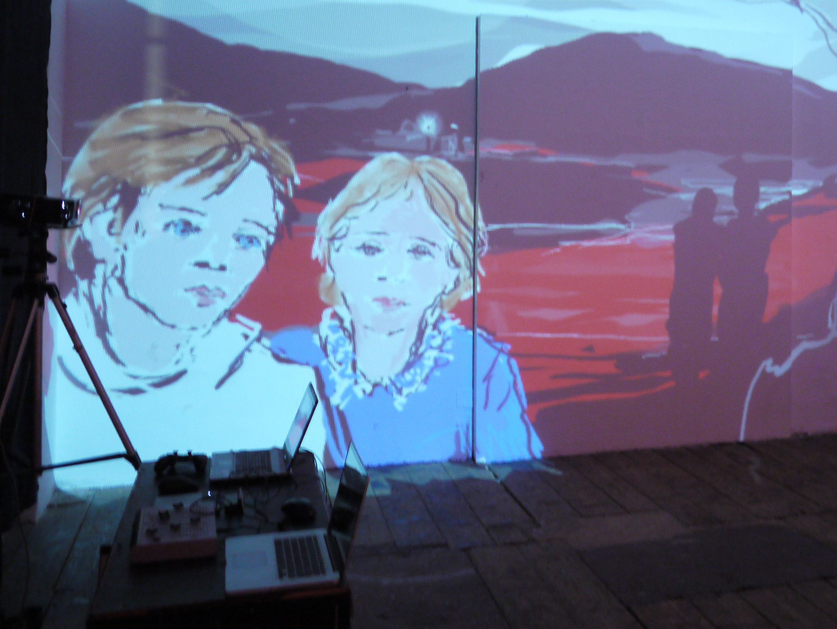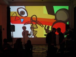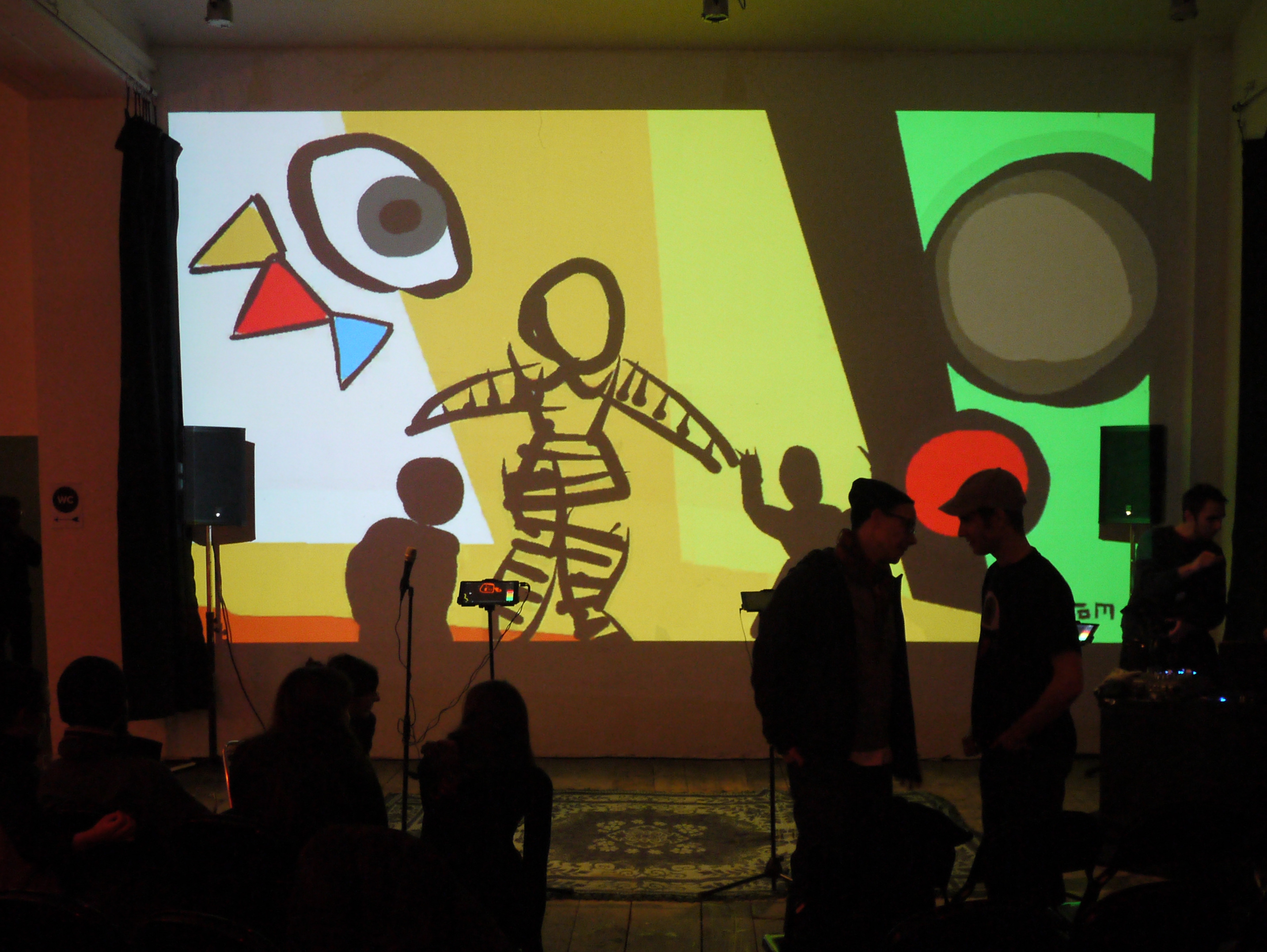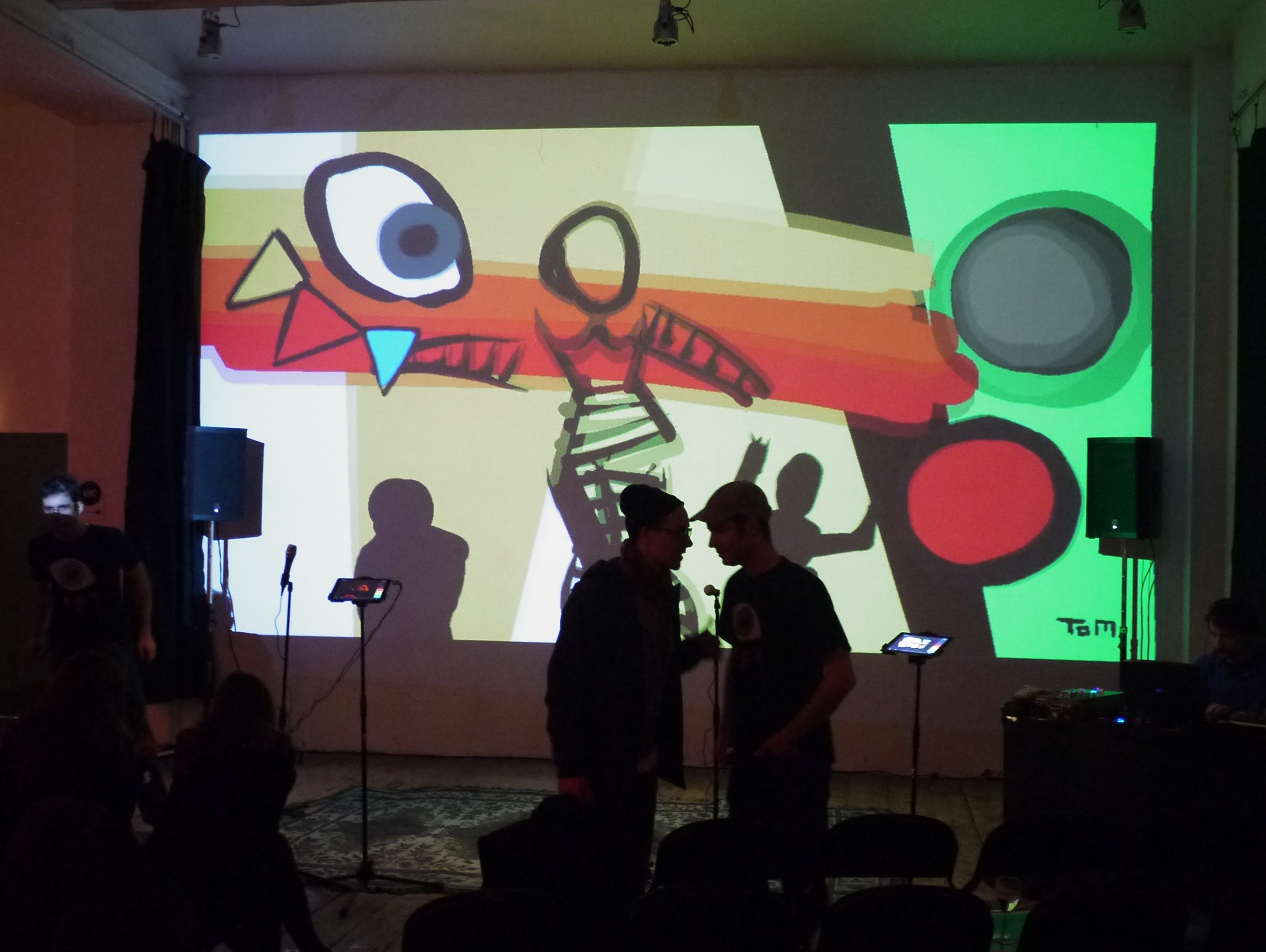 Next item on the programme was the performance by Weisse Wände – improvised music with live visuals by Maki and Iink (using the new Tagtool).