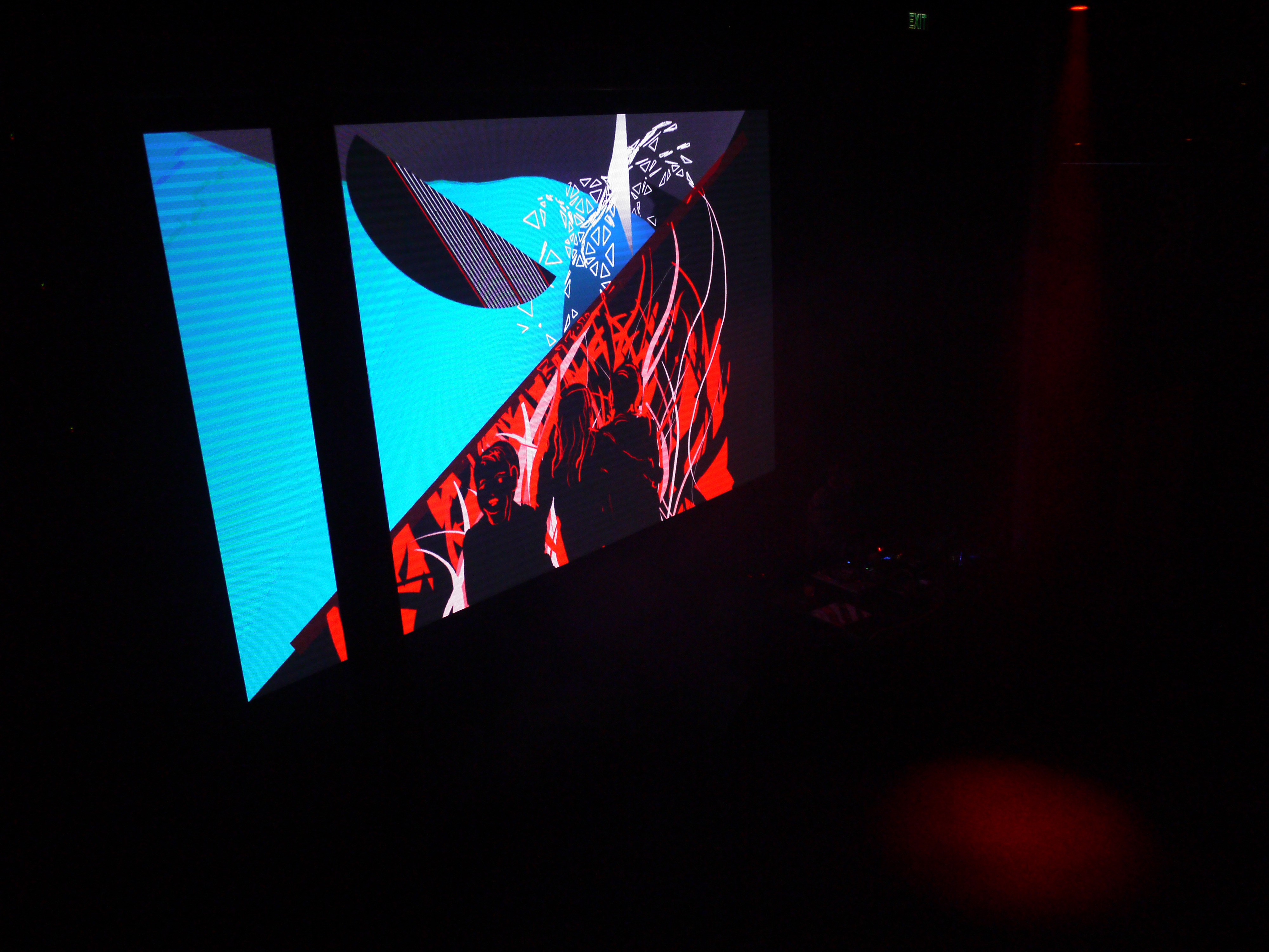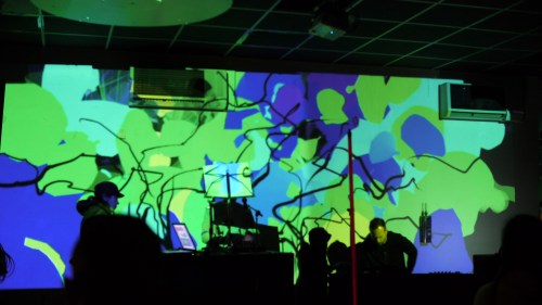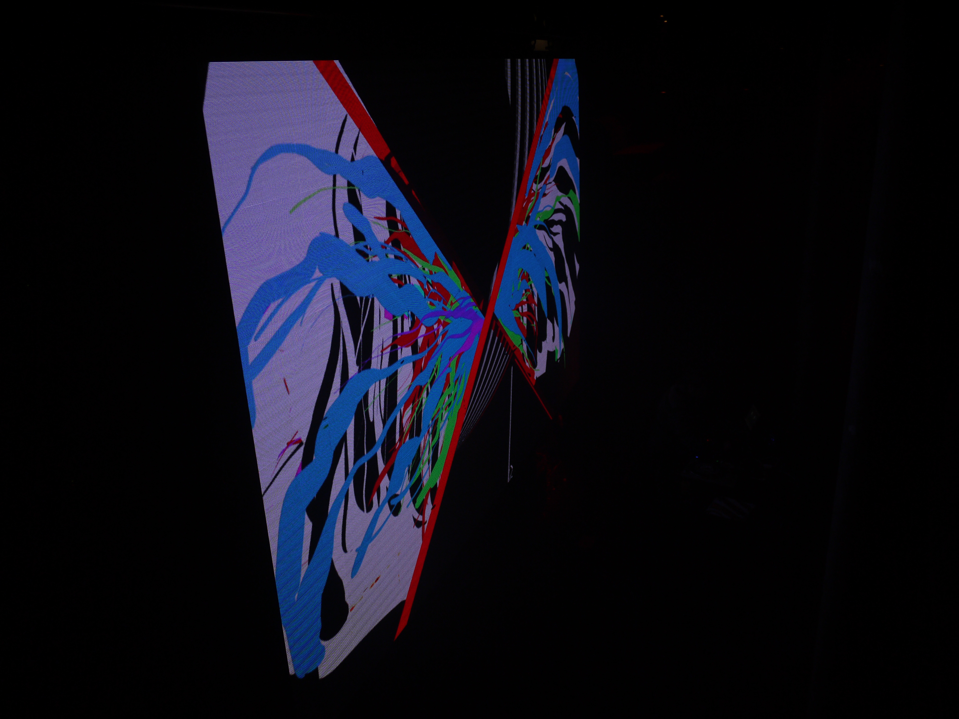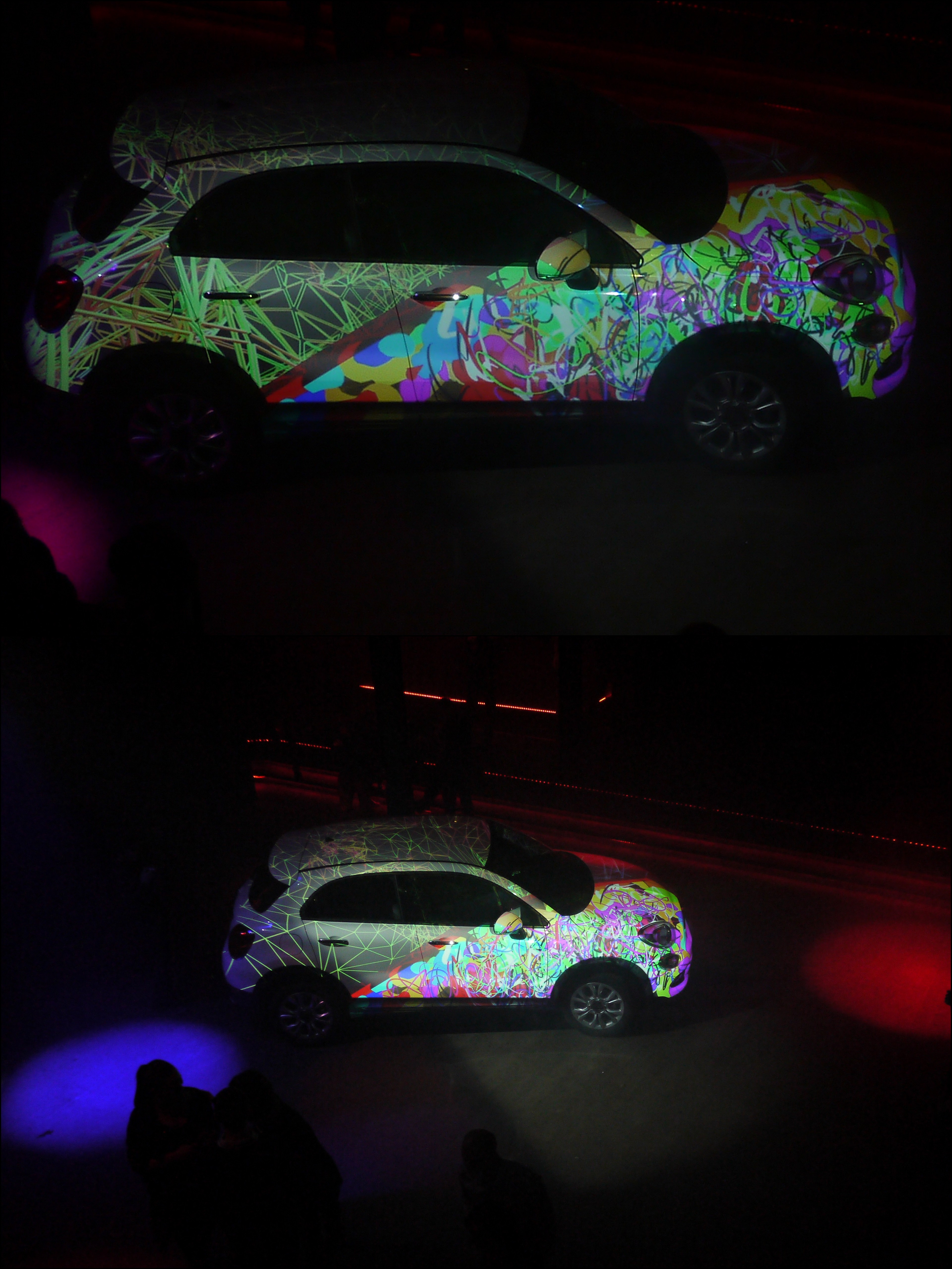 With the Lunchmeat crew – VJing with Pavel Karafiát at the SaSaZu Club in Prague. The surface of the car was mapped into two sections so that we could create the visuals together. Something different for me – Tagtool drawing v. content generated by code – a very interesting experiment and great fun to do!