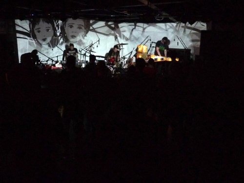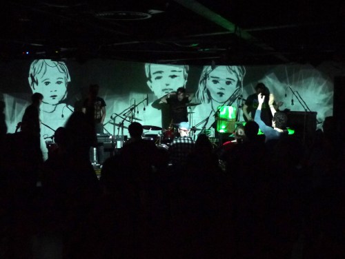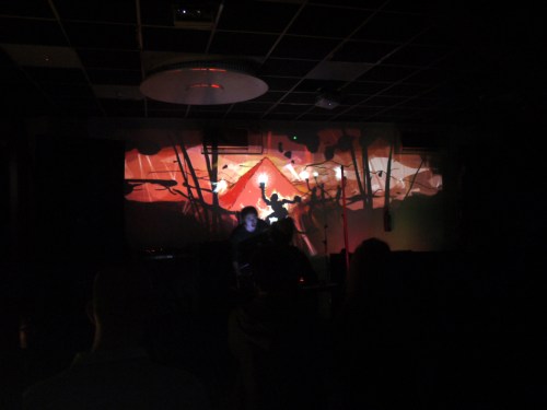 We were really happy to make a return visit to Klub Na Rampě in Jablonec (the first time that we were at this very nice venue was in December 2013 on tour with Czech band Vložte kočku). This time Vložte kočku’s programme included some of the songs from their newly released album ‘HEDVIKA’. Dima did the lighting for this show and I was providing some live drawing accompaniment.