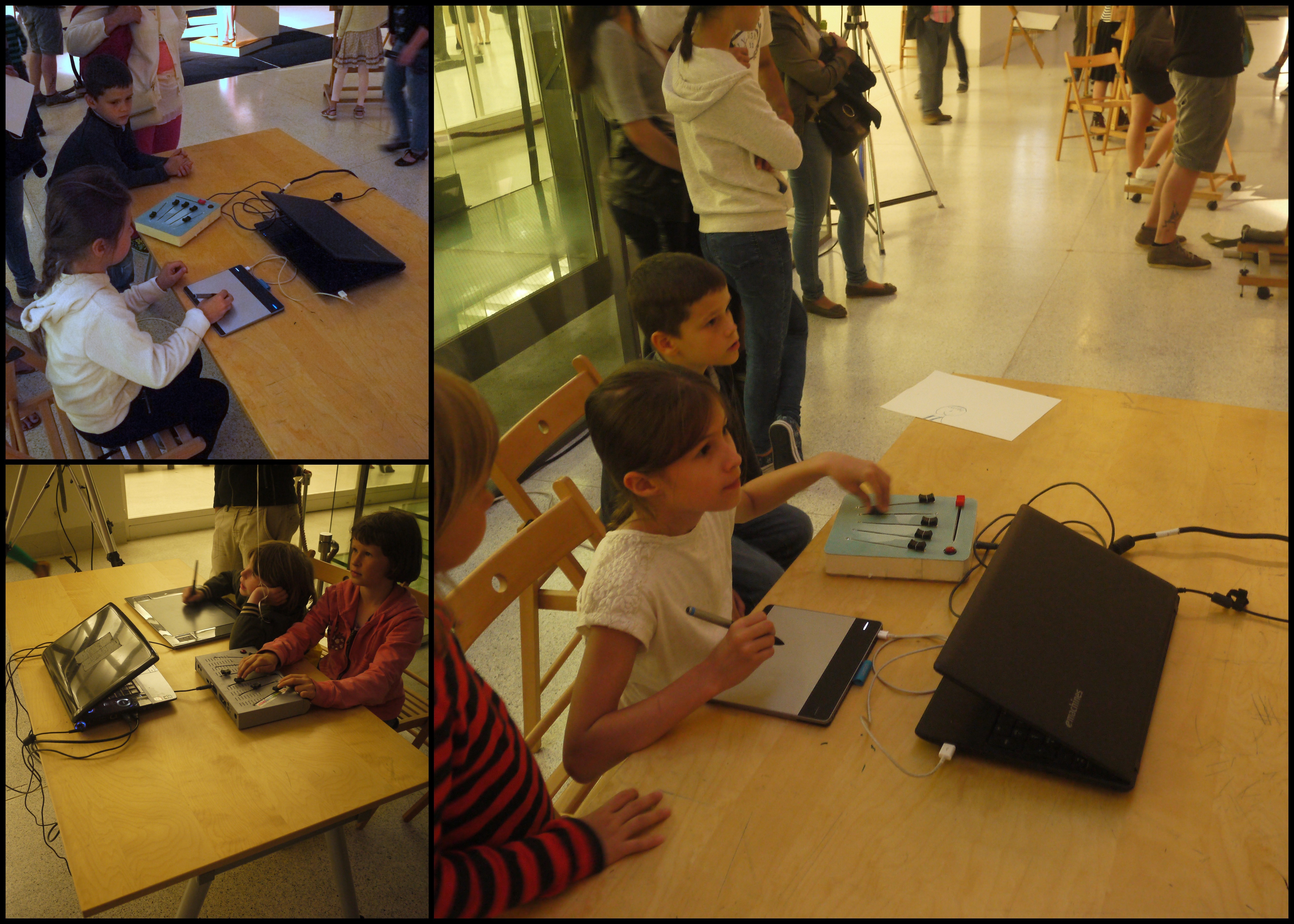I’ll end this post with a collage of Dima’s photos of children drawing at the two Tagtool mini workstations. As usual, the Tagtool proved to be very popular!