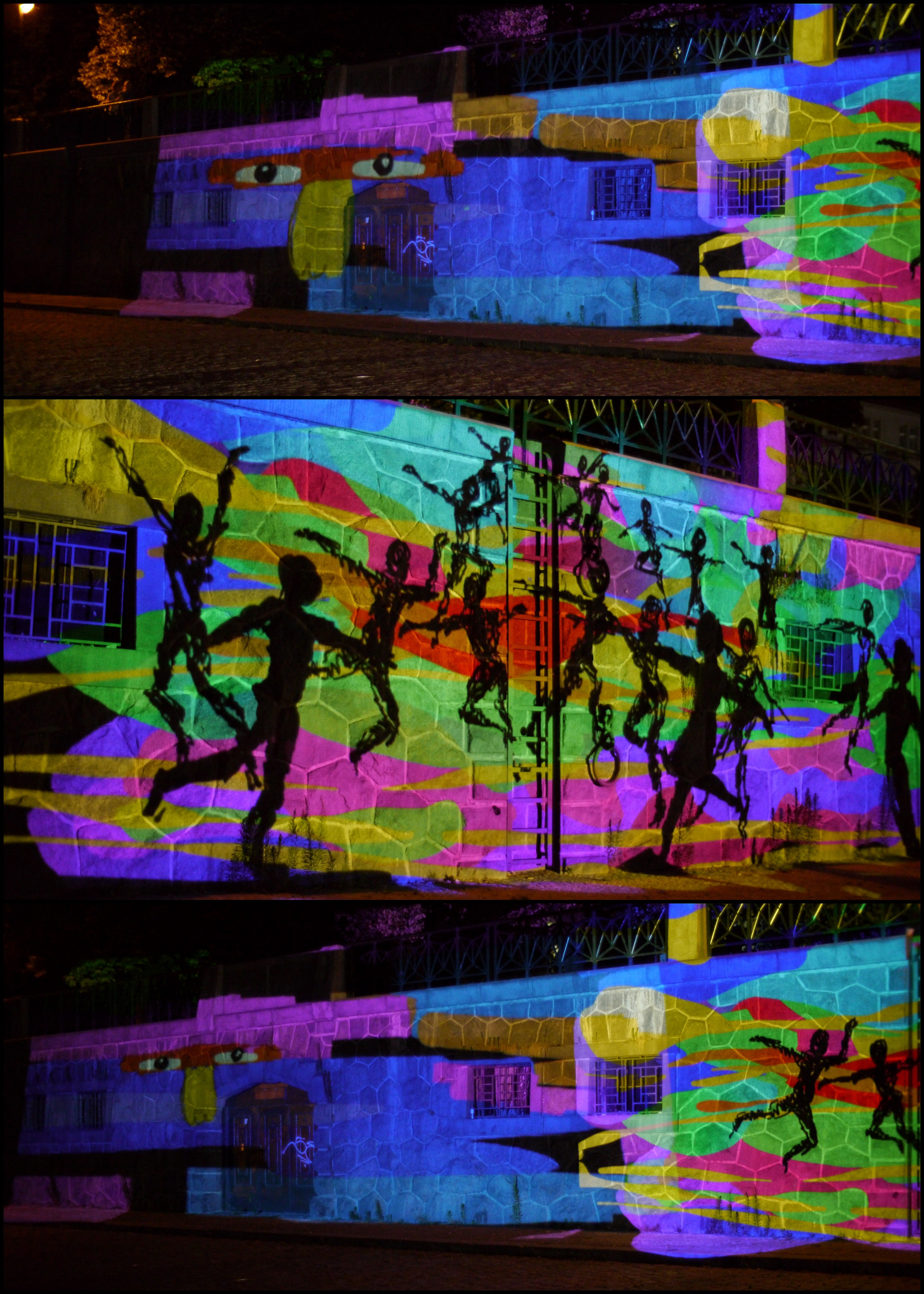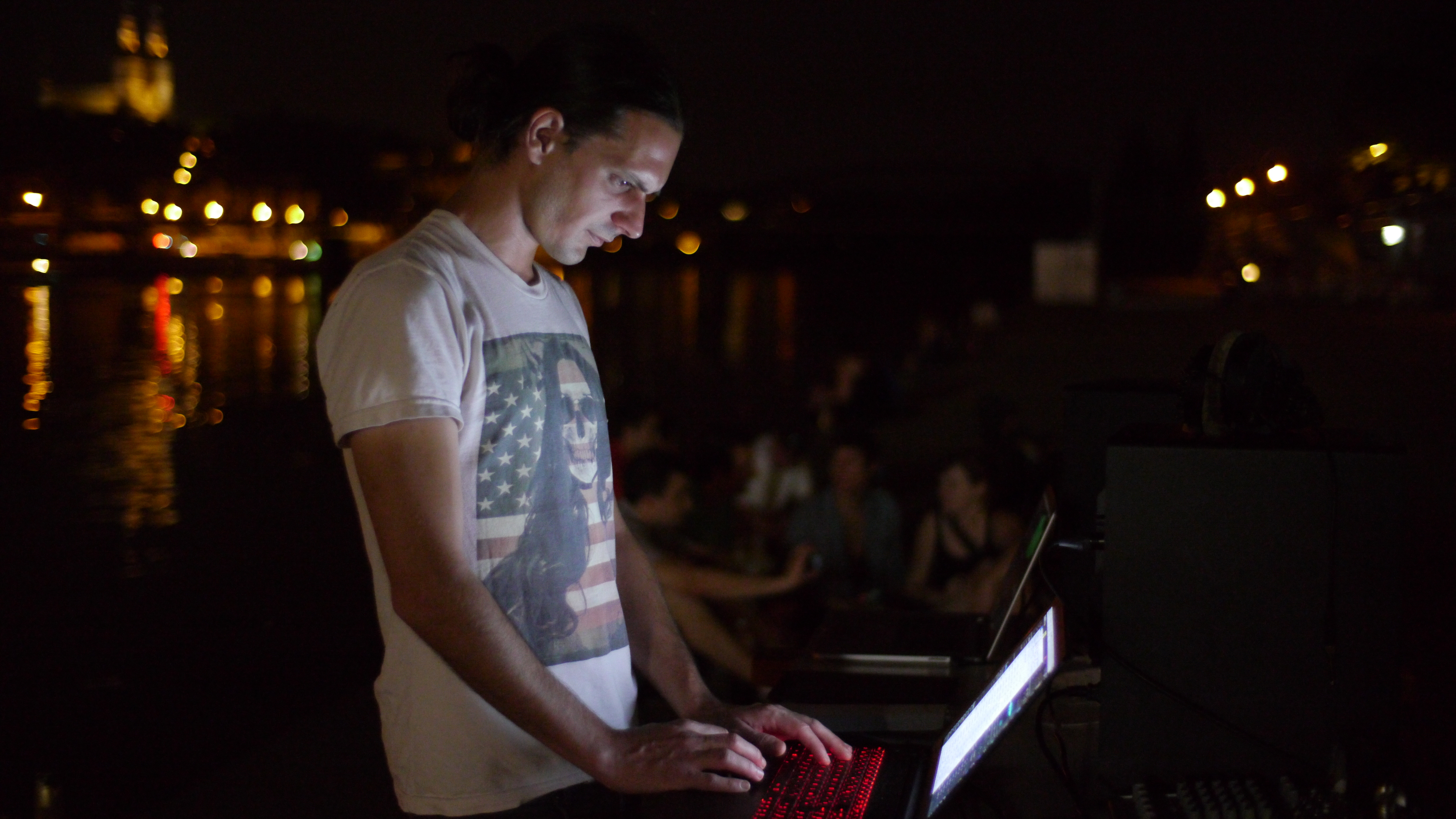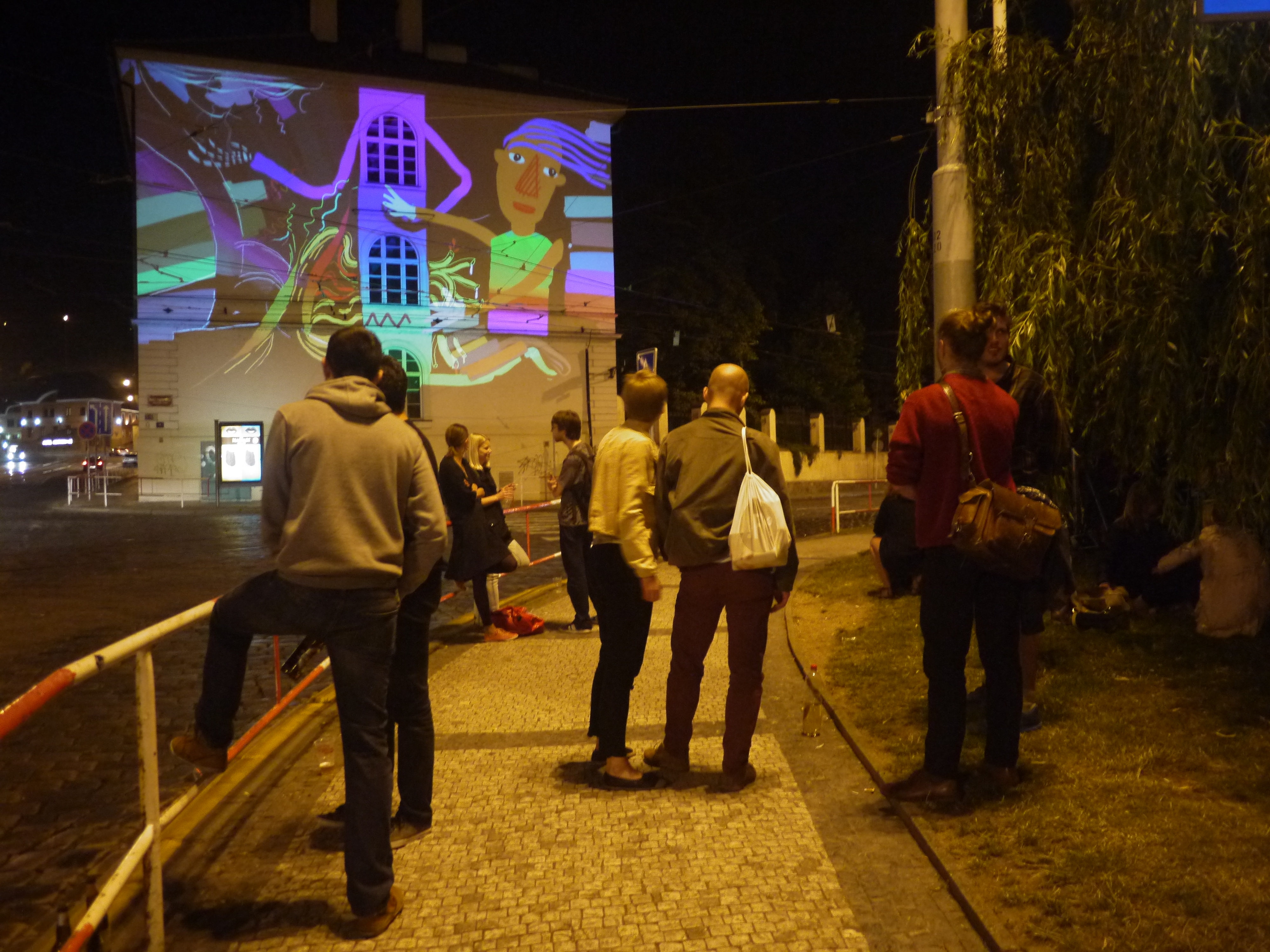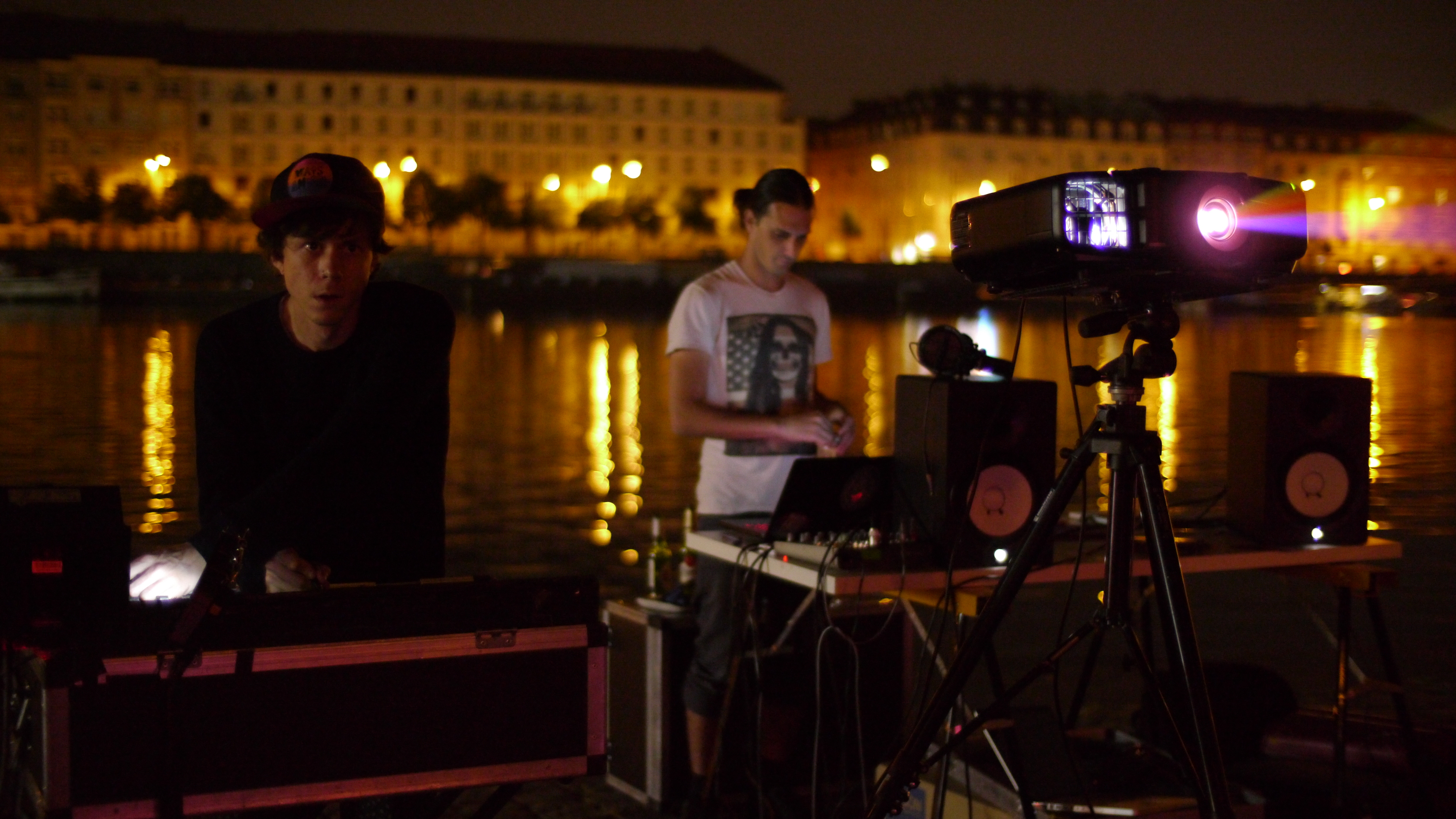 …projector bombing on the quayside at Naplavka with VJ Suave on their last evening in Prague before beginning their journey back home to Brazil.