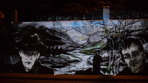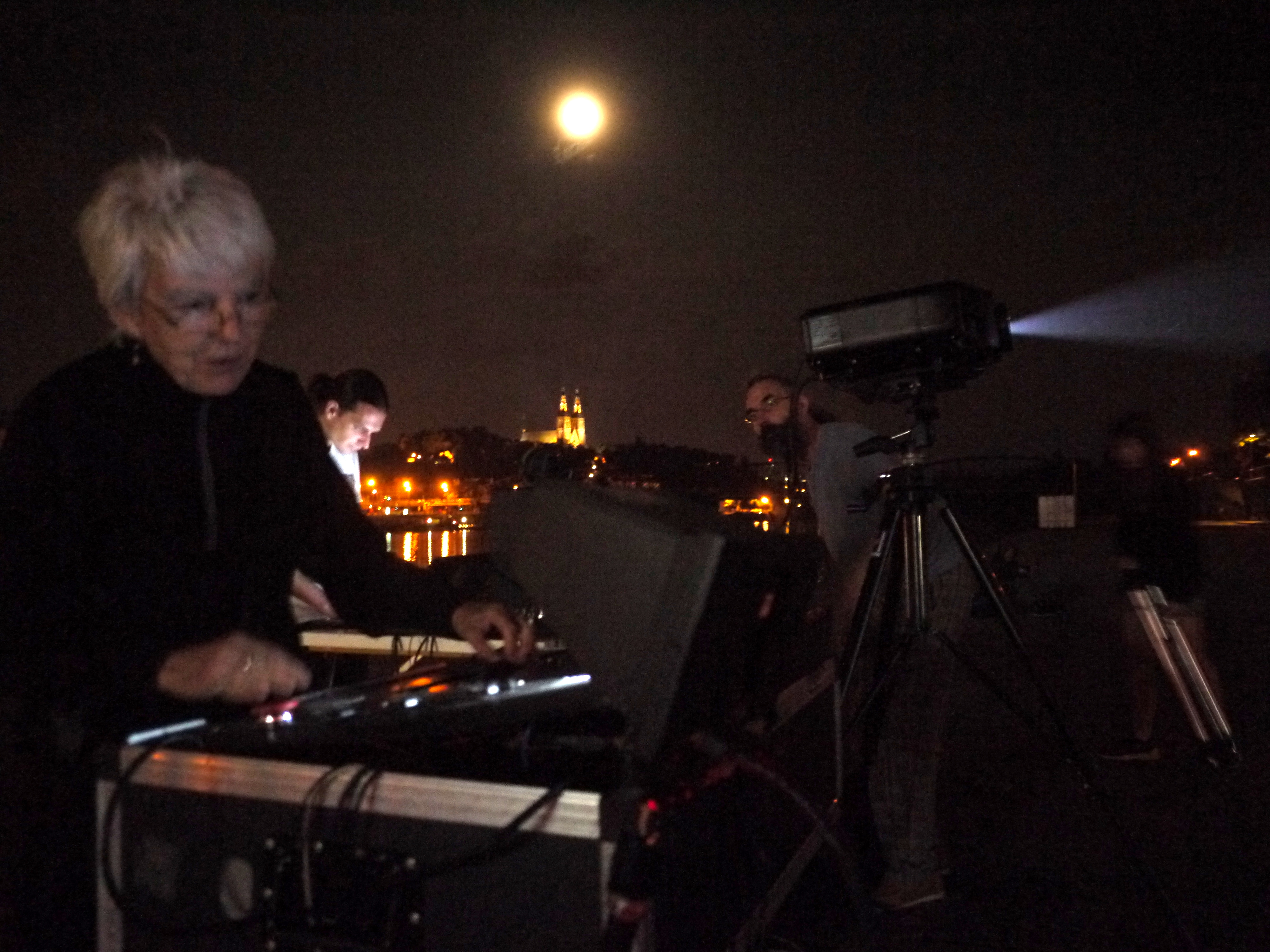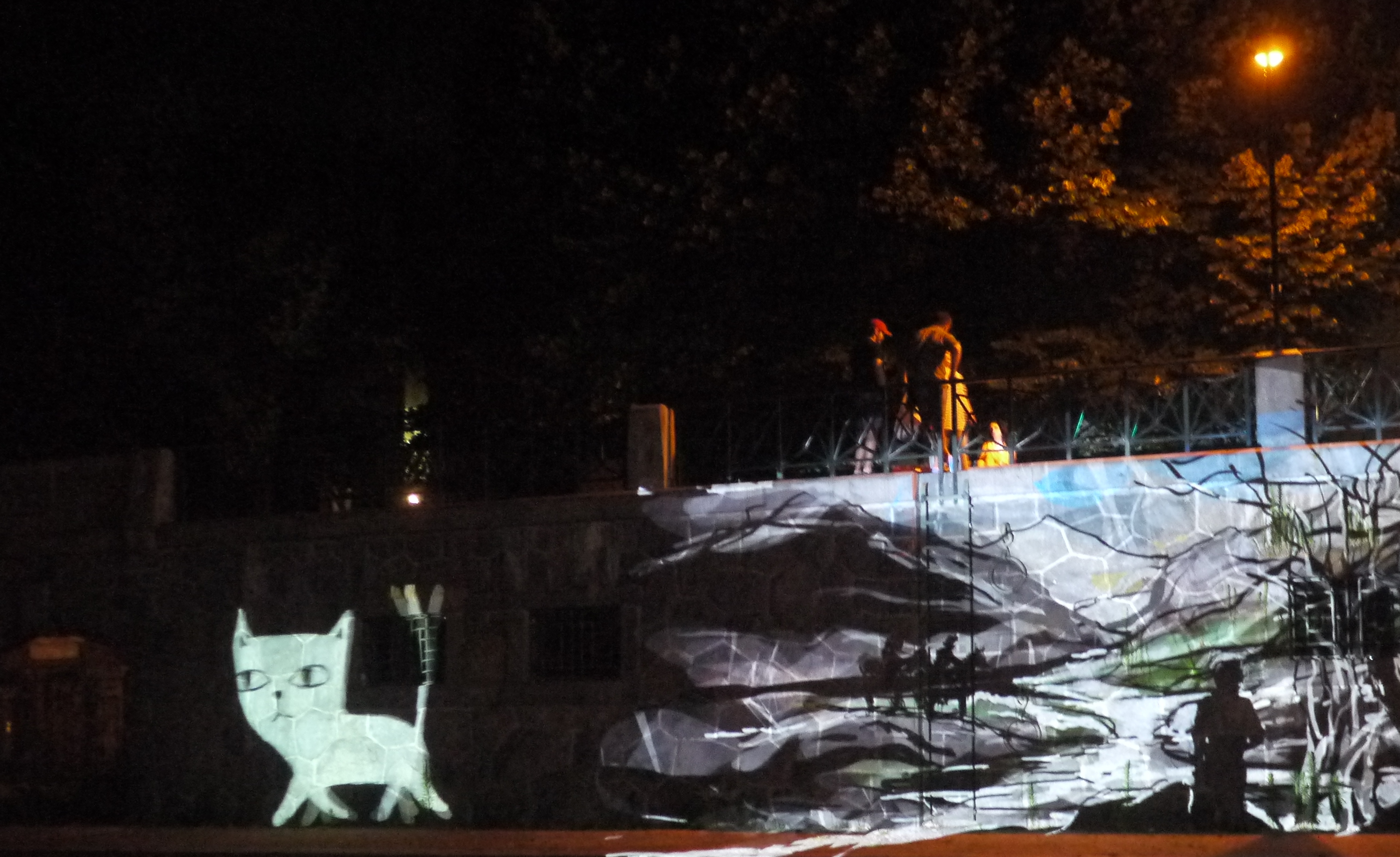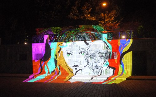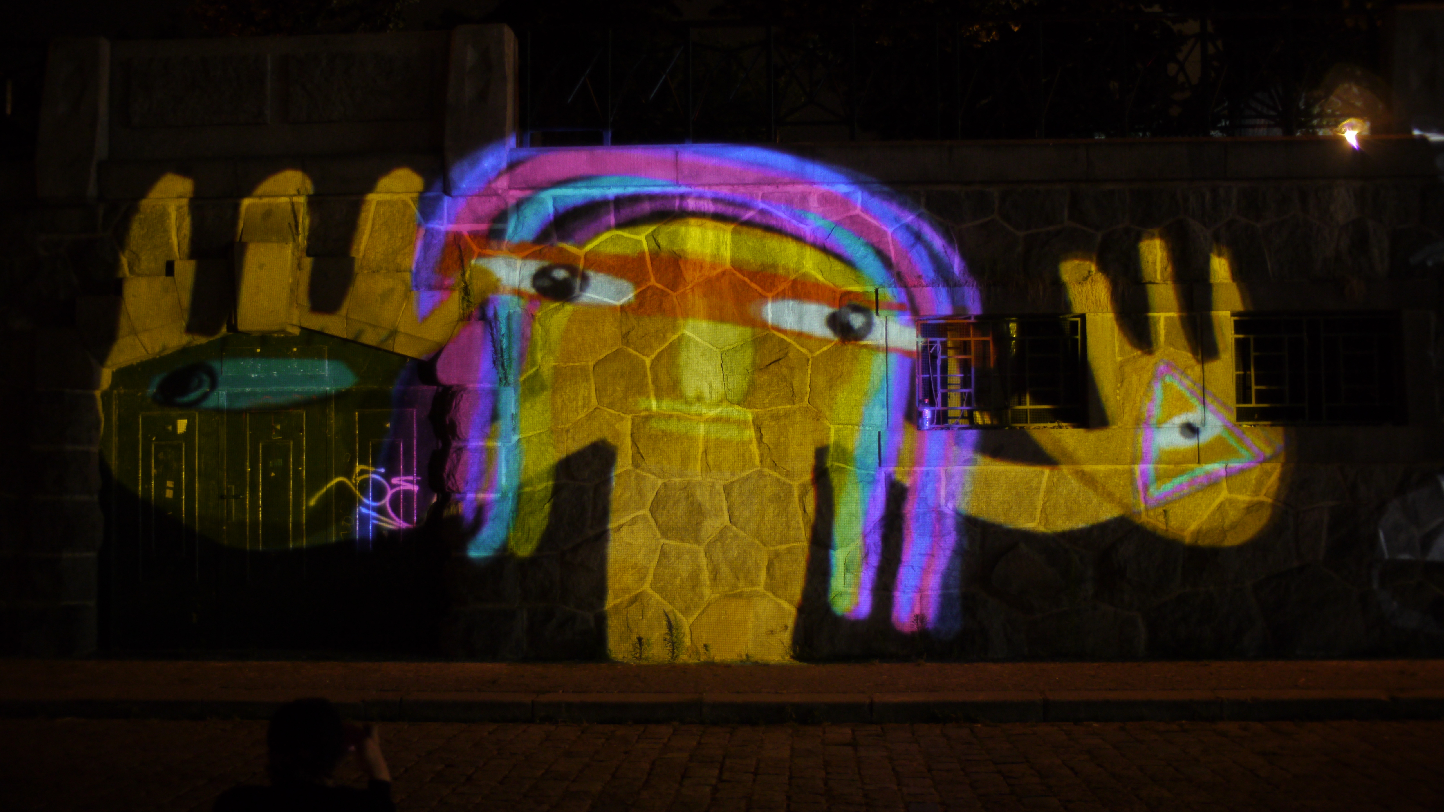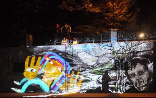 …projector bombing on the quayside at Naplavka with VJ Suave on their last evening in Prague before beginning their journey back home to Brazil.