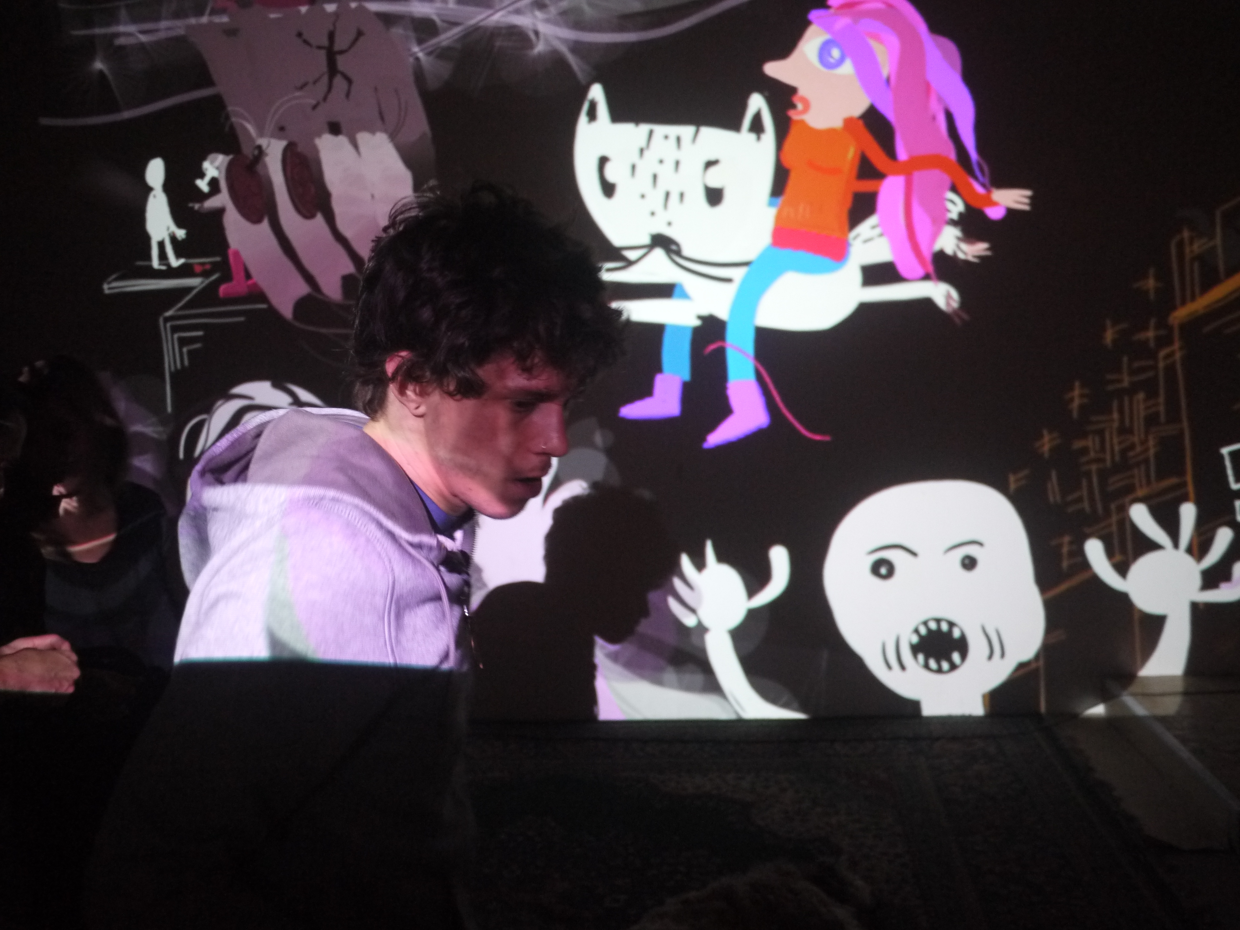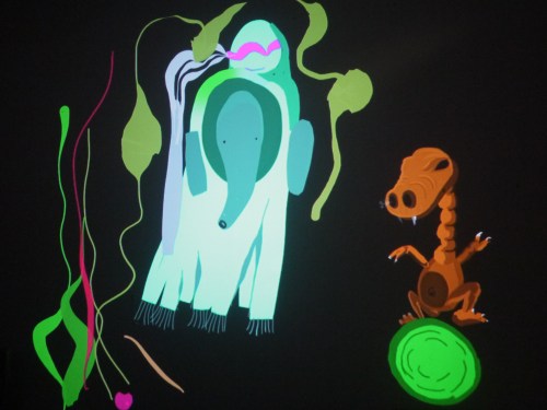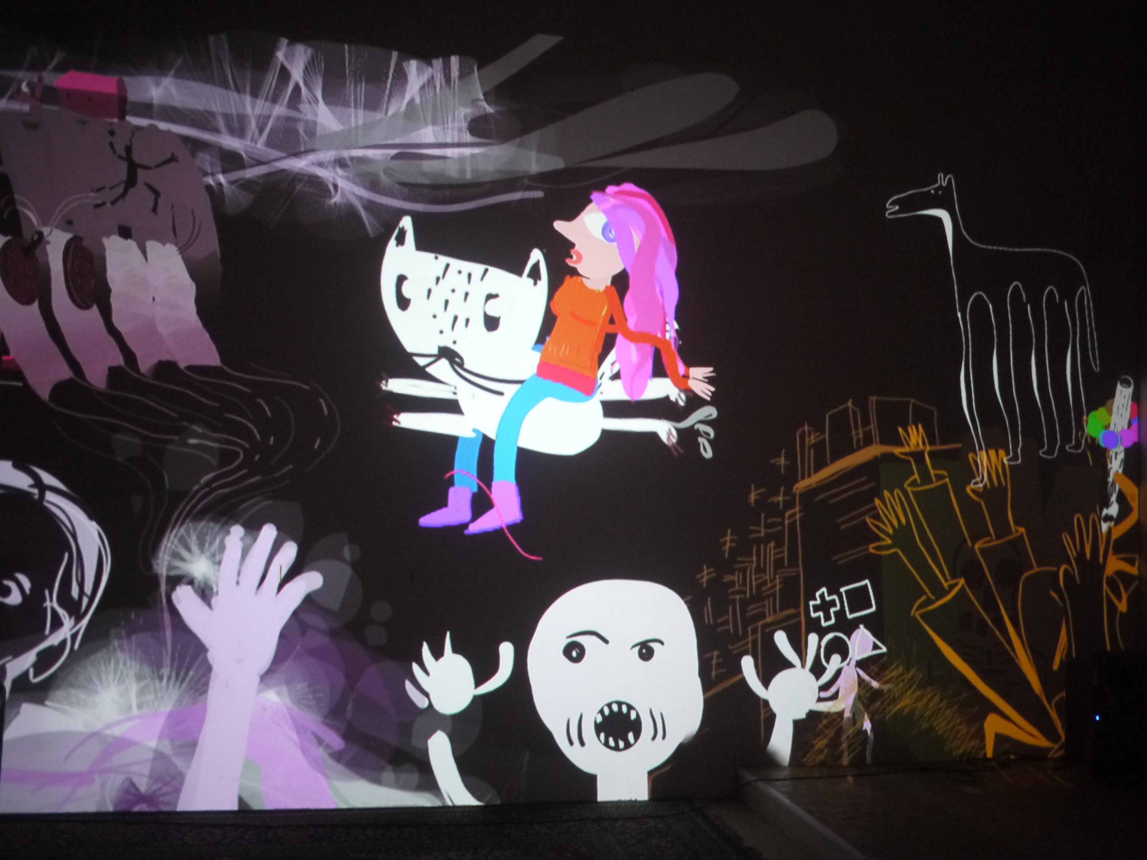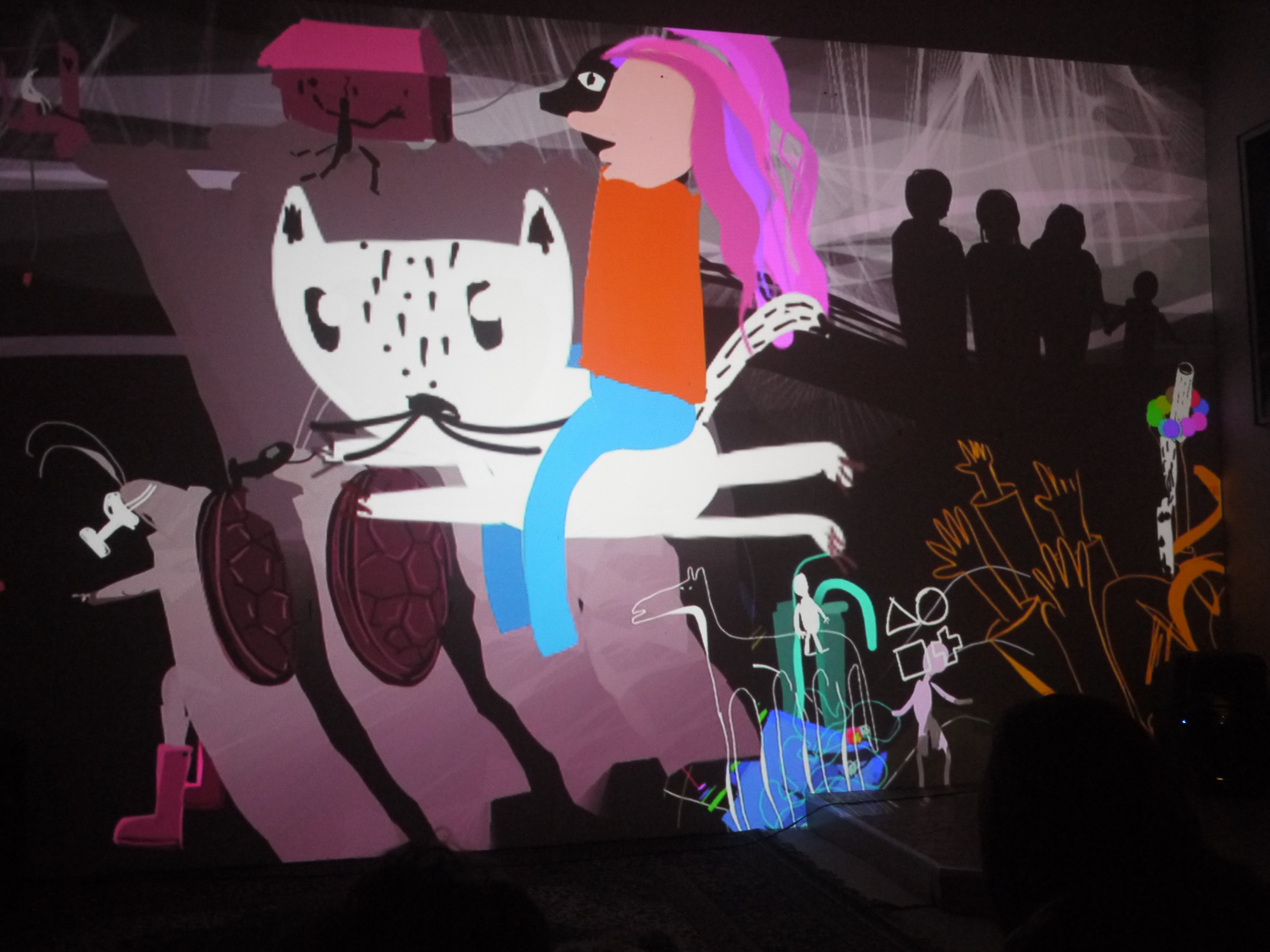 Of course the stills I took with my little camera can’t show DJ Suave, Maki and Iink’s clever animation techniques….but I think they capture something of the sense of fun that can be had when a lot of people draw and animate together!