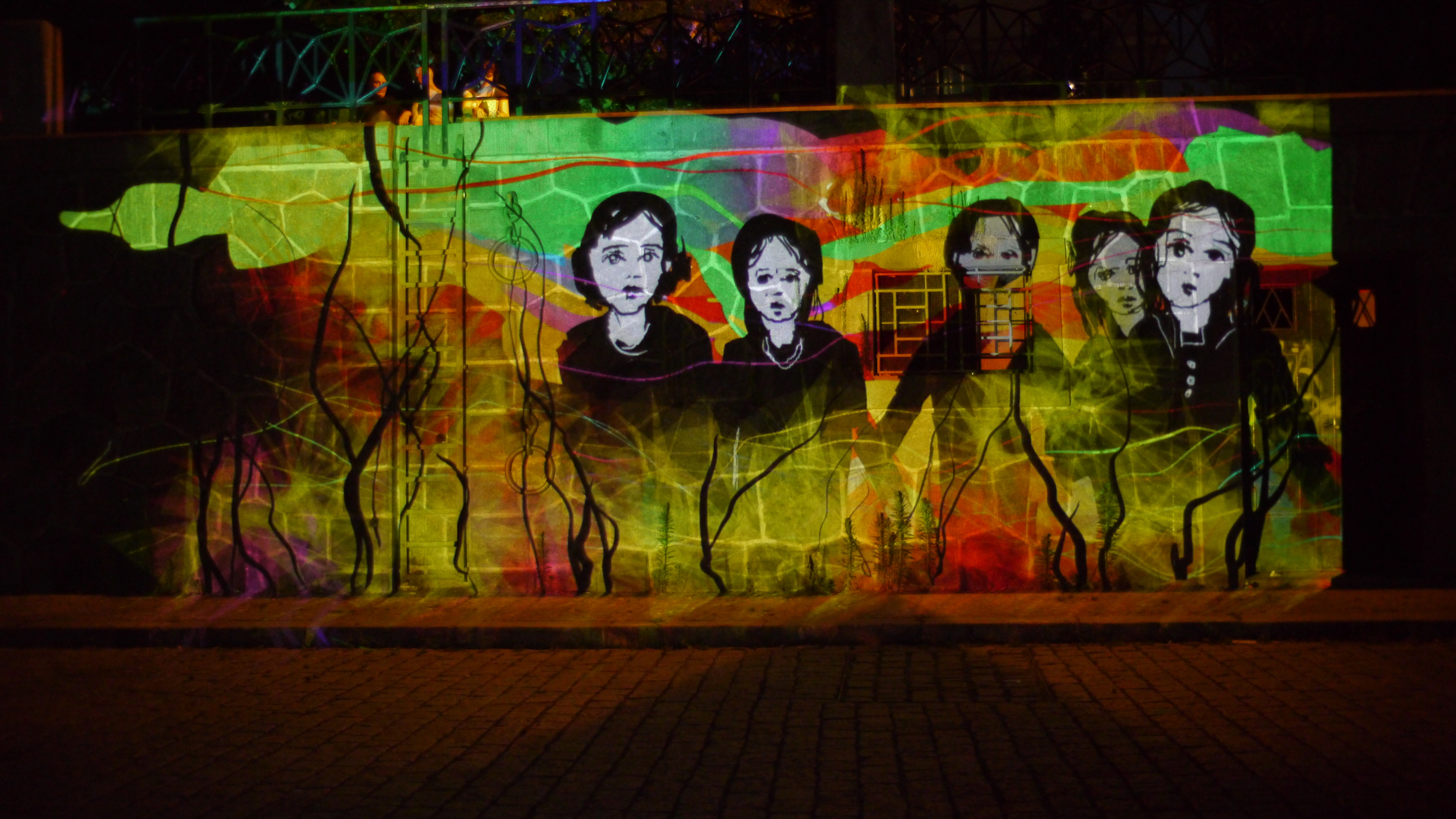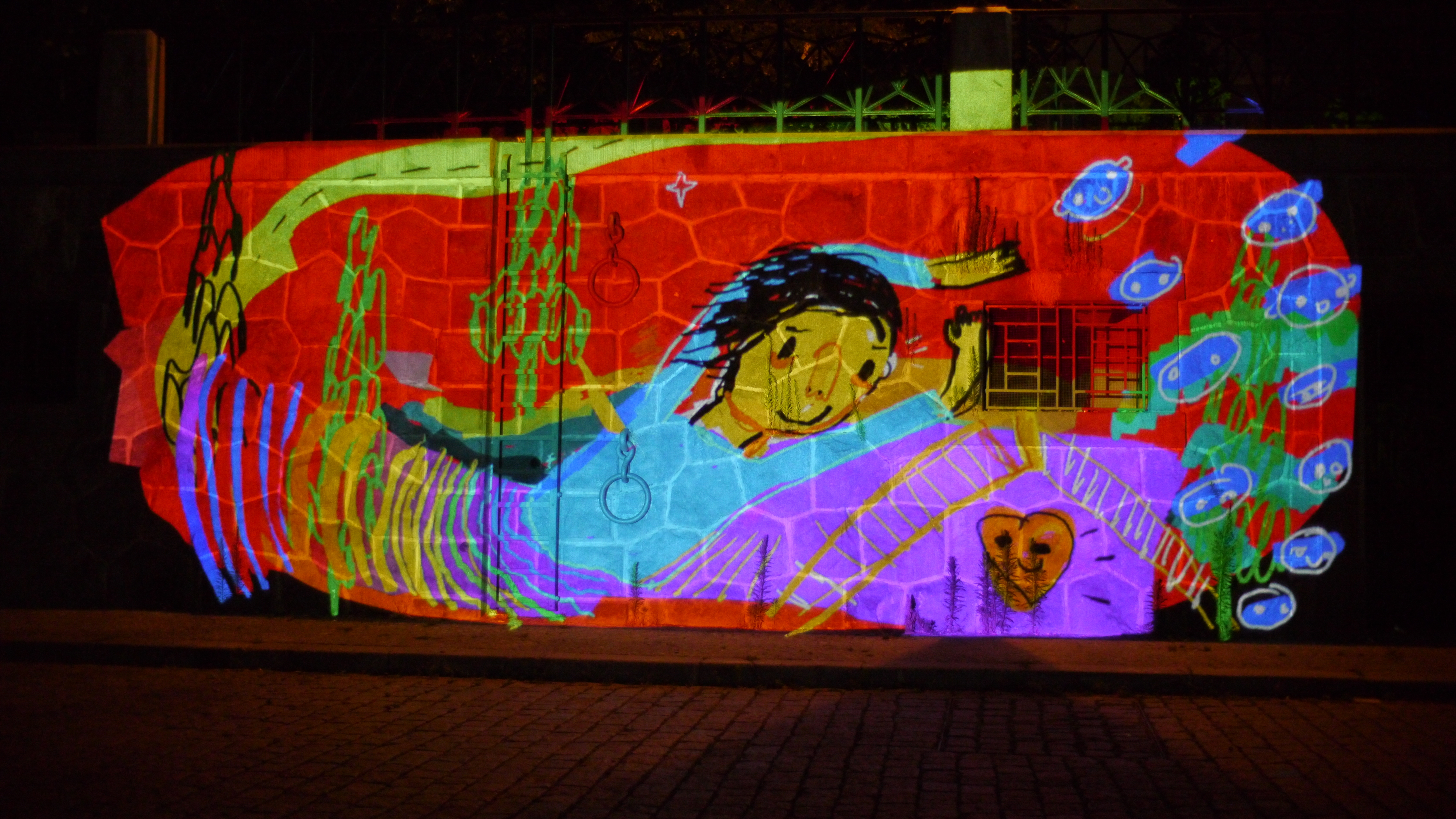 We parked the van on the quay, set up the Tagtool, projectors and sound system, started up the generator and then spent the night drawing and just having fun.