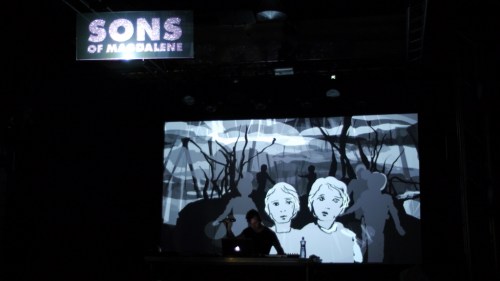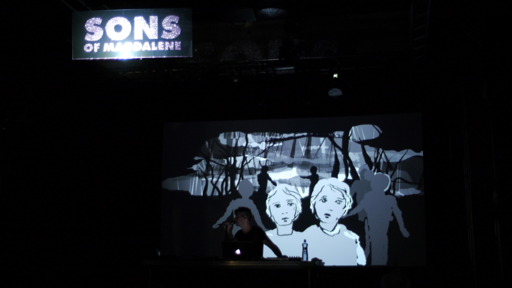 My set was to accompany Sons of Magdalene, a project of American musician Joshua Eustis. I began with some rather dark-toned monochrome drawing.