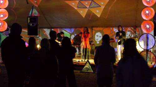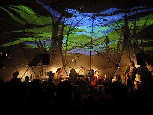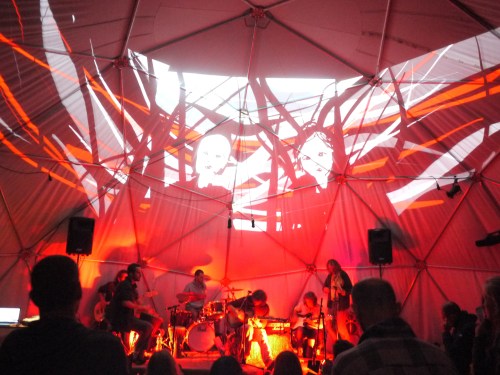 But despite these problems, drawing in the tent was fun and also had the added benefit of making the tent glow in the darkness on the hillside attracting the festival visitors to visit it.