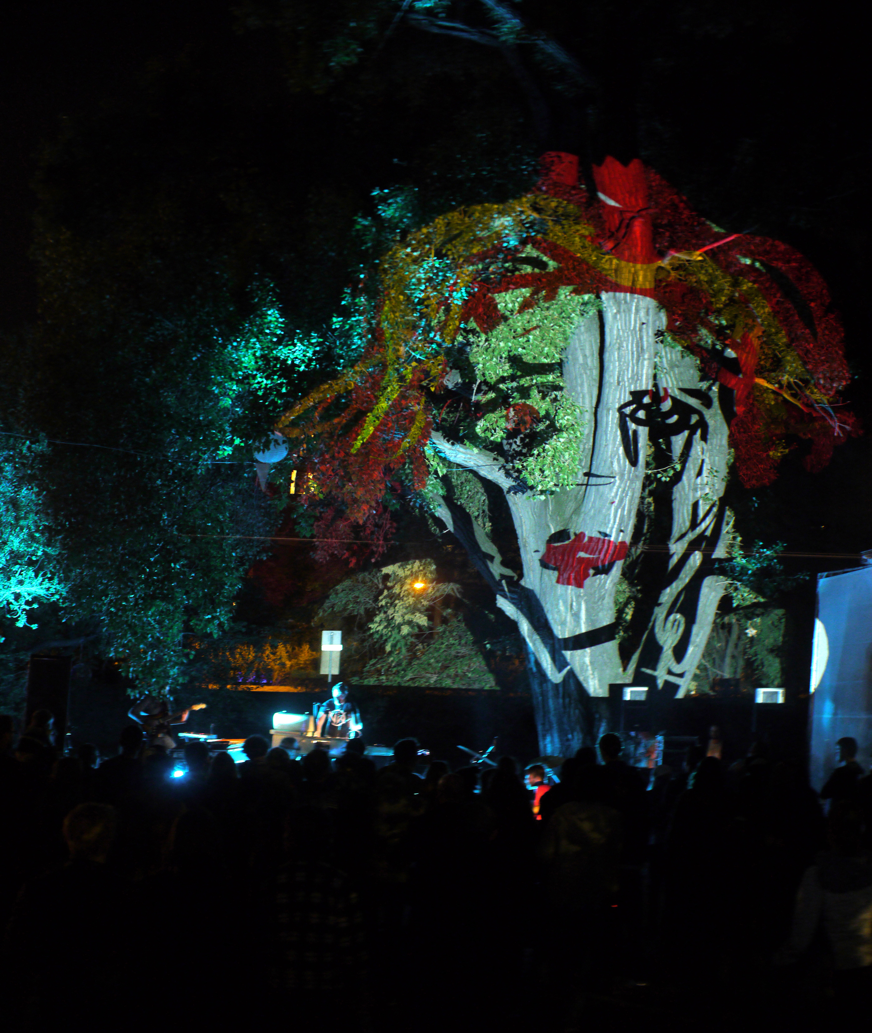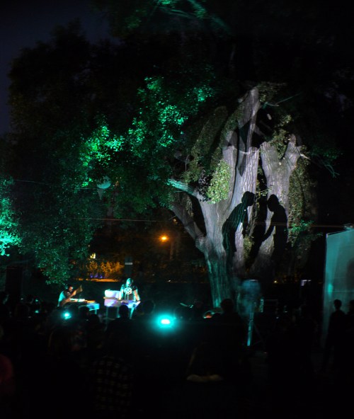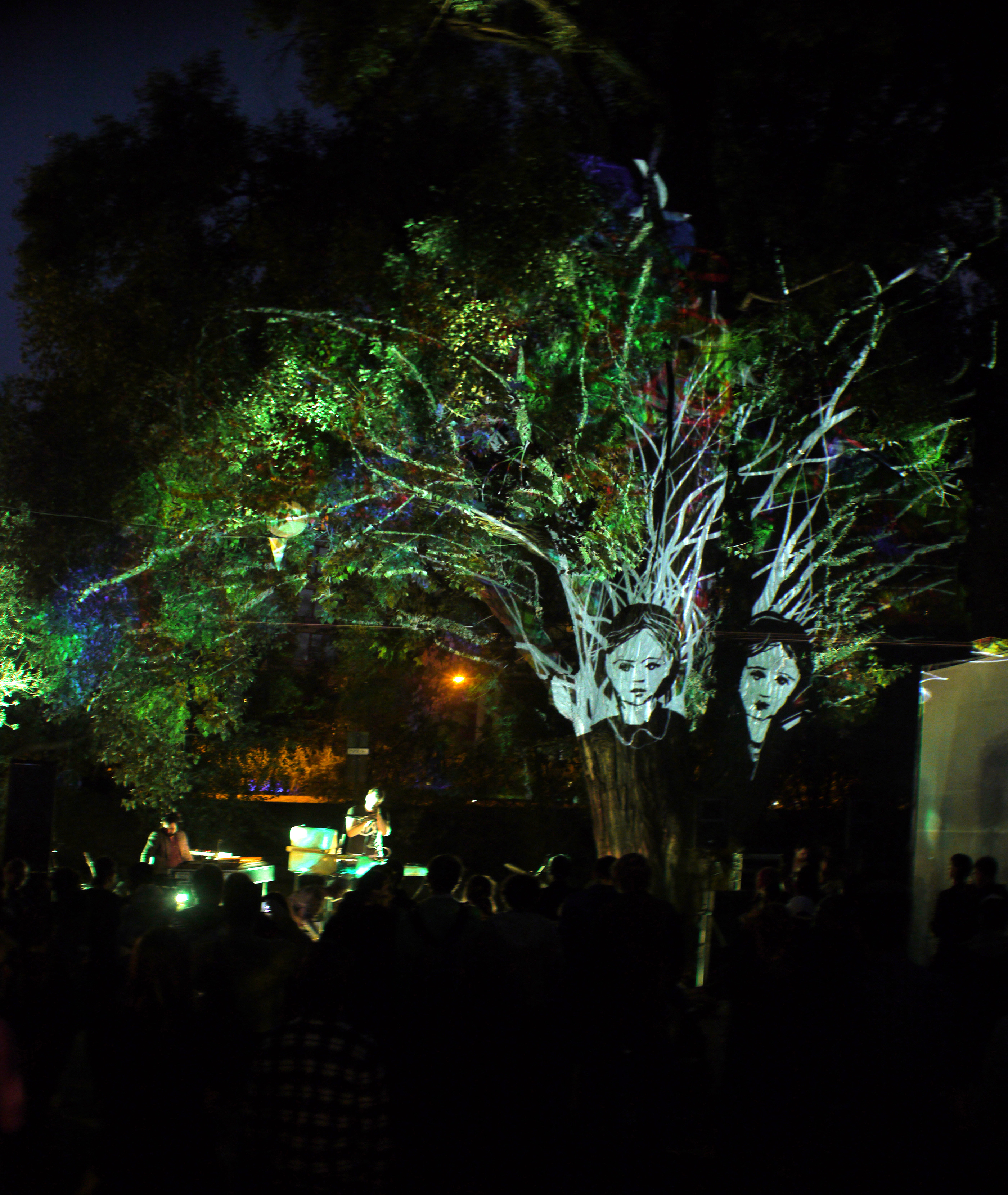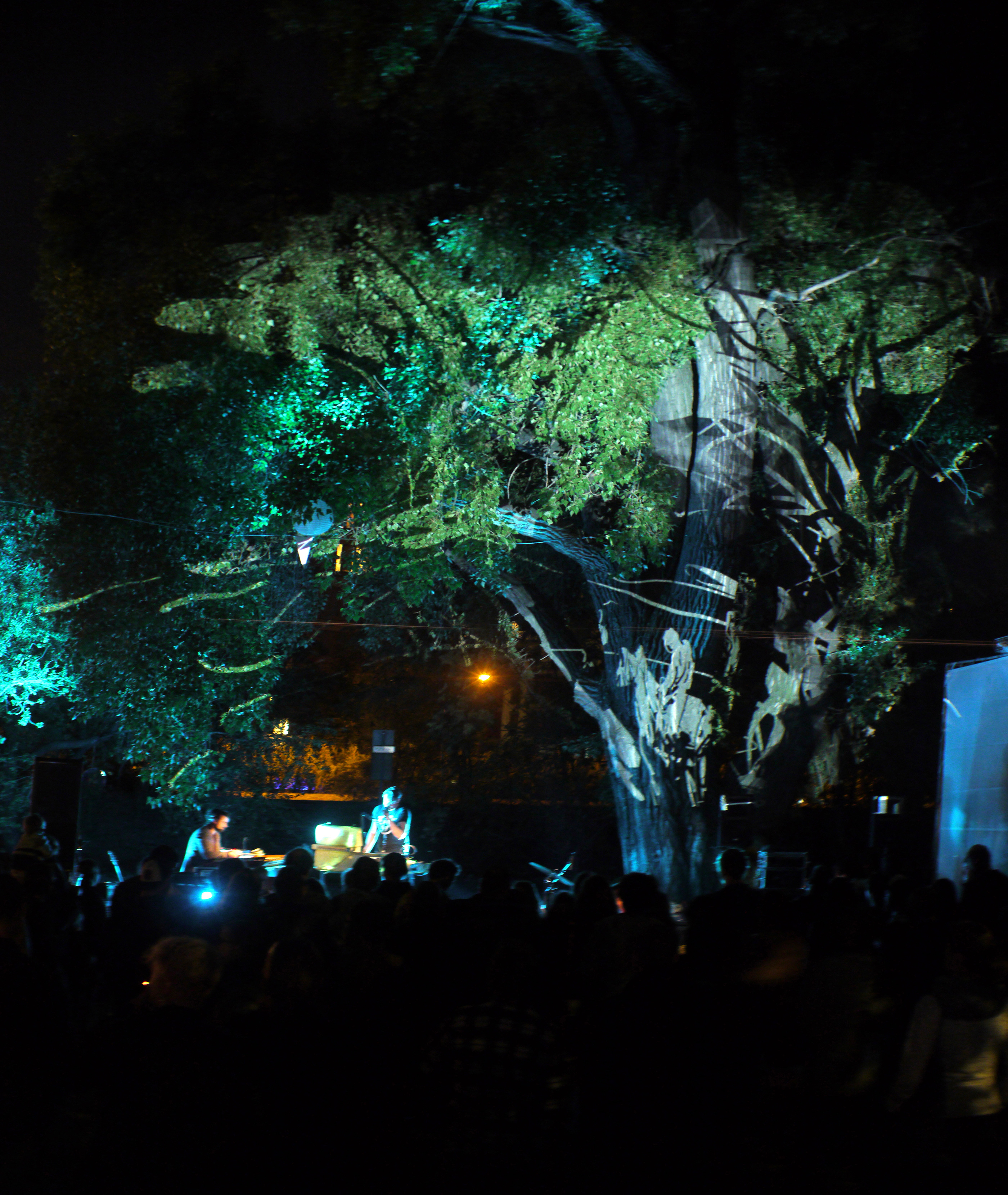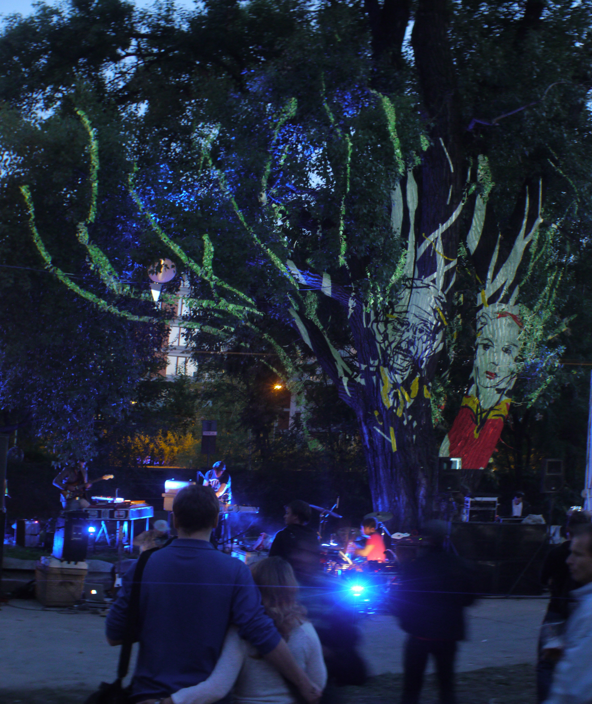 …on 18 September at PŘÍSTAV 18600 drawing on this big tree behind the stage.