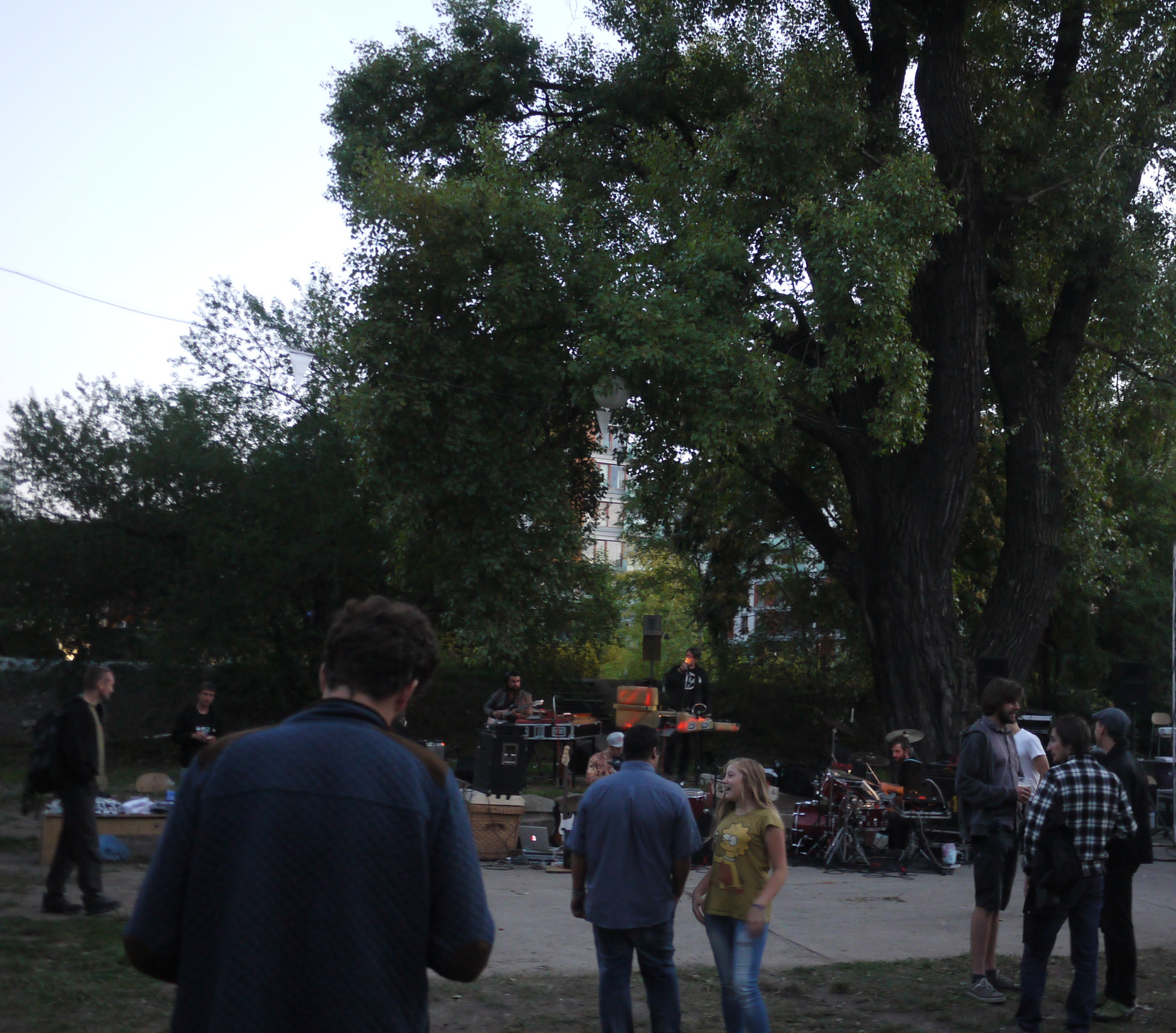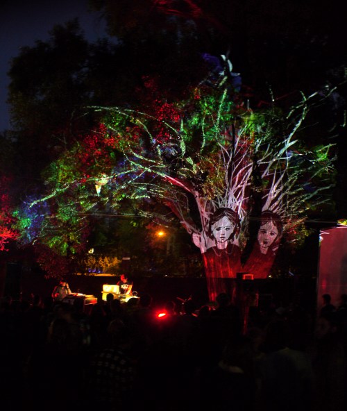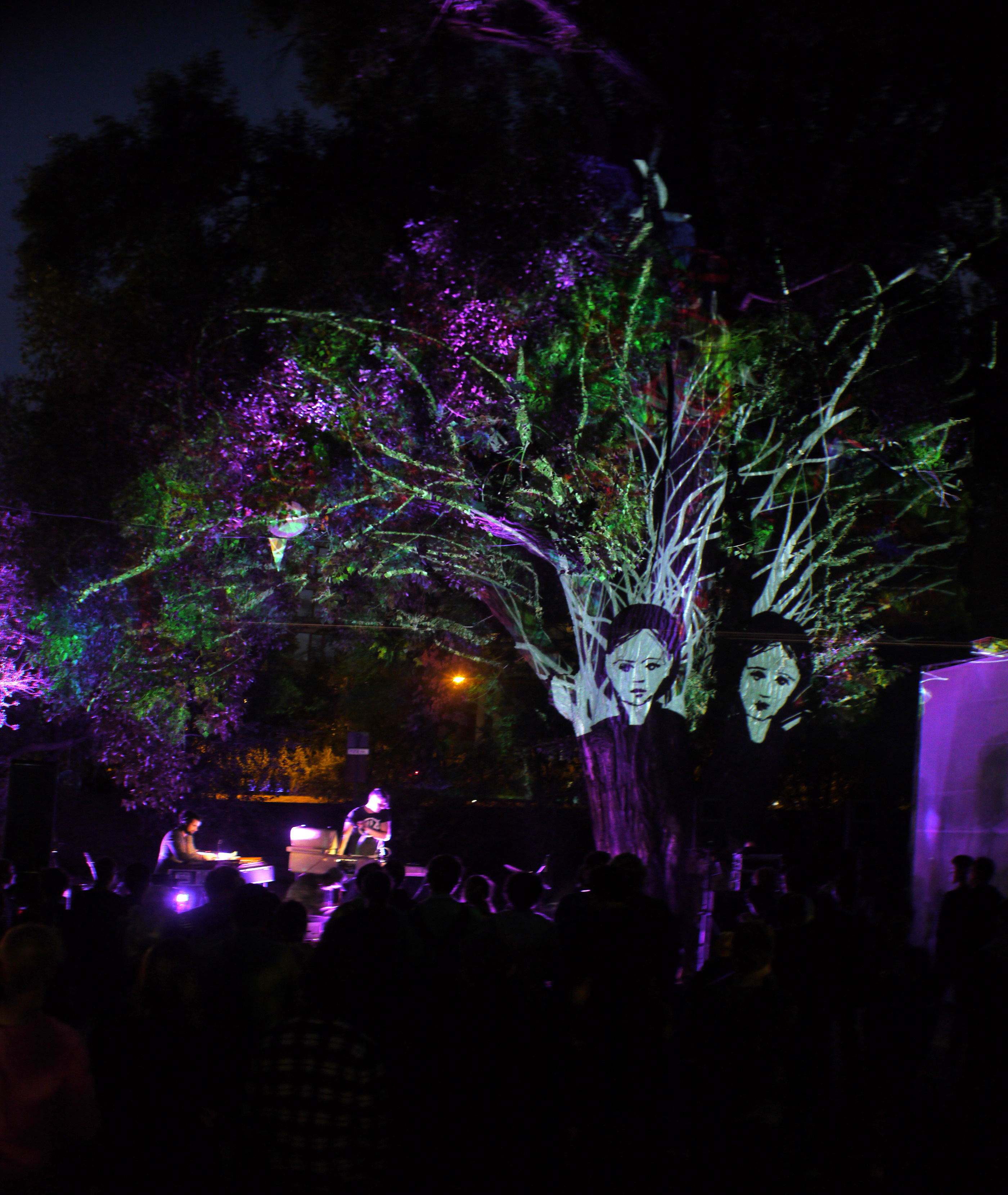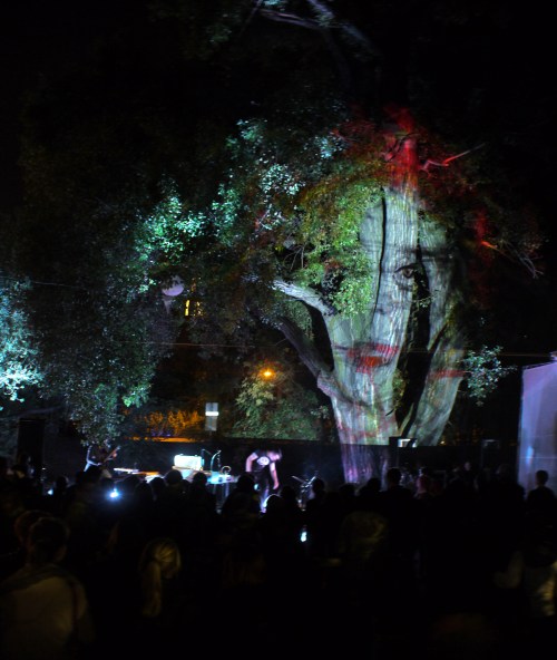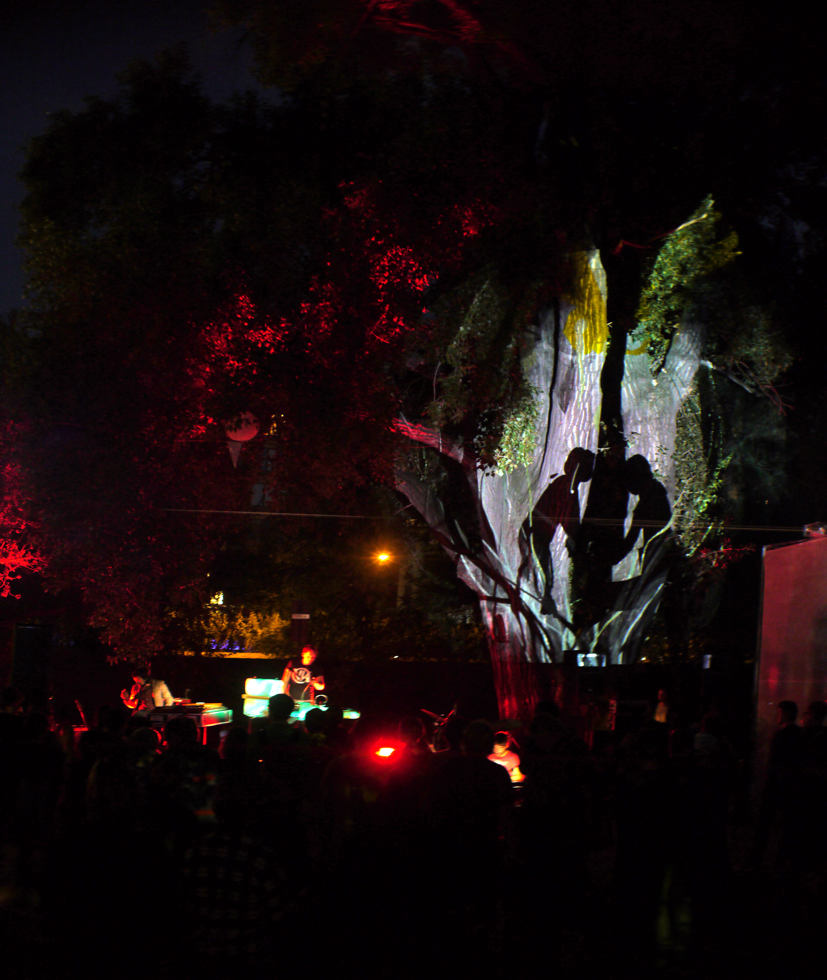 …on 18 September at PŘÍSTAV 18600 drawing on this big tree behind the stage.