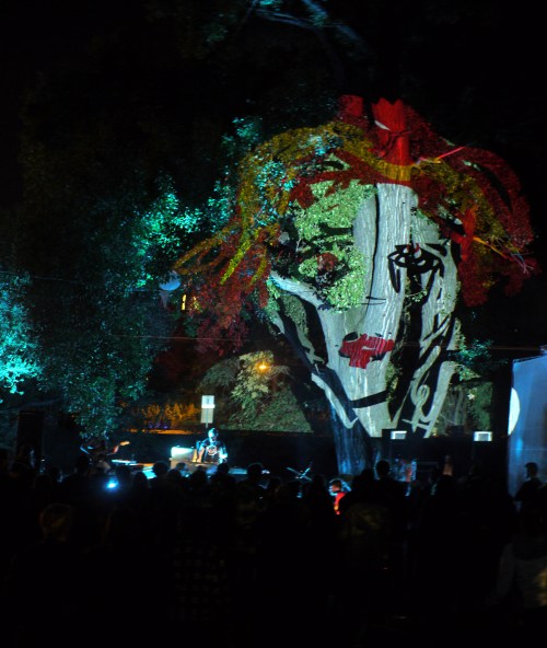 The thick trunk of the tree and leafy branches were a really interesting ‘surface’ on which to draw. Dima took a lot of photos of the different drawings for me, but as they were all taken from the same position beside my Tagtool workstation unfortunately the band hardly can be seen over the heads of the audience.